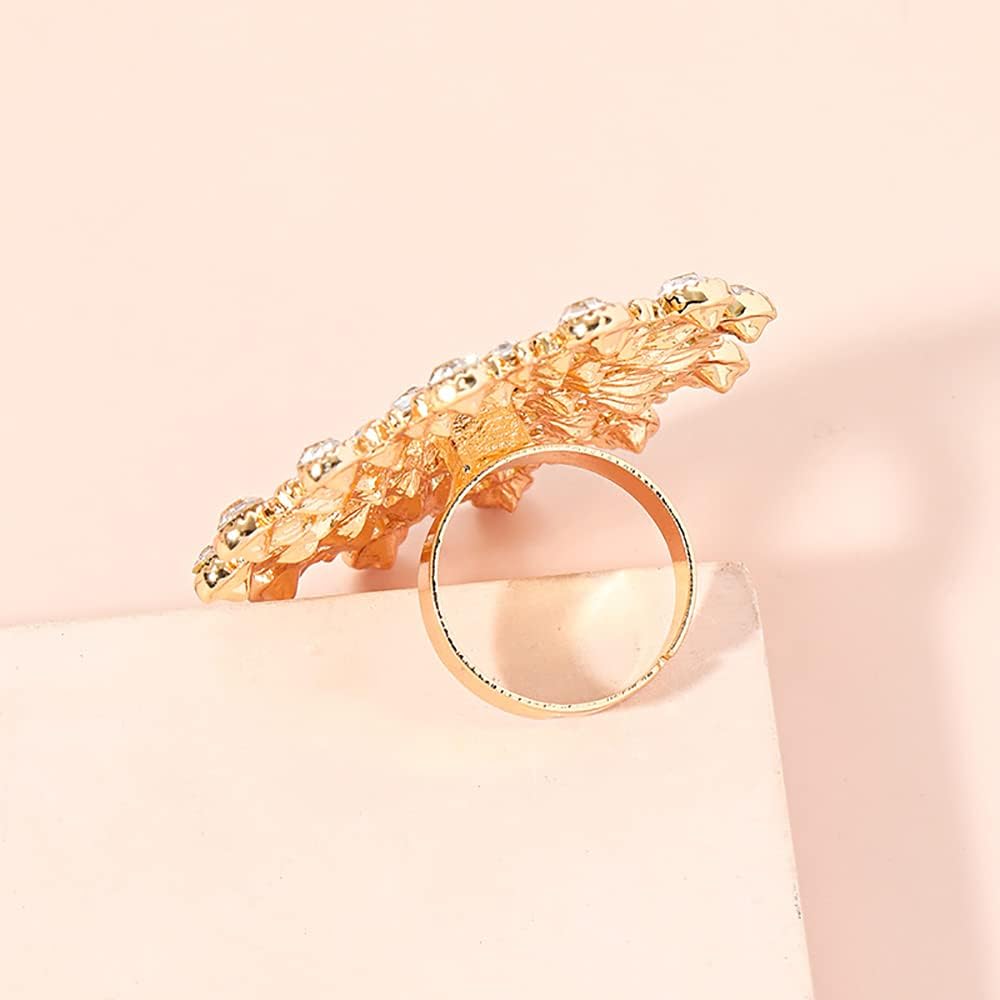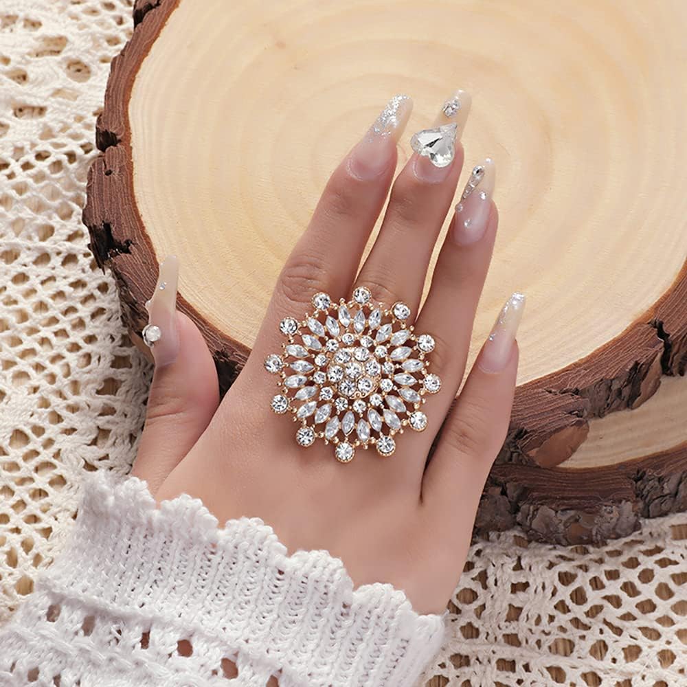 ♥SIZE & STYLE♥ Please kindly refer to the product image. Ring Height:45mm(1.77in),Ring Width:45mm(1.77in). CExaggerated CZ Sunflower Flower Promise Ring Birthday Anniversary Gift for Wife.