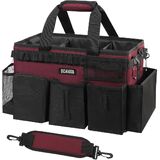 Exquisite Details: The 5 inner compartments are large enough for organizing cleaning tools. 3 individual deep outer pockets, 1 mesh side pocket and 1 trash bag dispenser allow you storage and access of other cleaning tools. Also, securely zipped pocket is design for safely storing your important items