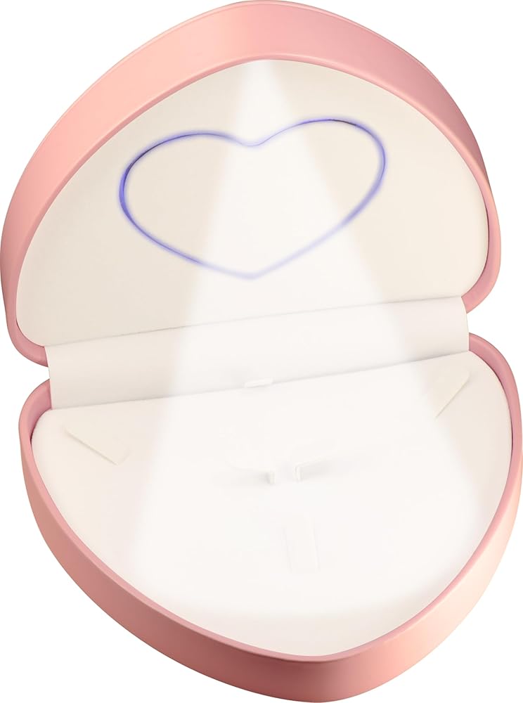 LED Pink Necklace Pendant Ring Box for Engagement, Wedding…Unique Designed Heart to Heart Idea PU Leather Heart Shaped Necklace Earrings Ring Sets Jewelry Gift Holder Box with Light for Men for Women