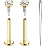 PunkTracker 16g/18g Titanium Internal Thread CZ Stud Piercing Jewelry for Tragus Nose Helix Medusa Lip Labret - Helix Tragus Cartilage Earring for Women Men 3PCS