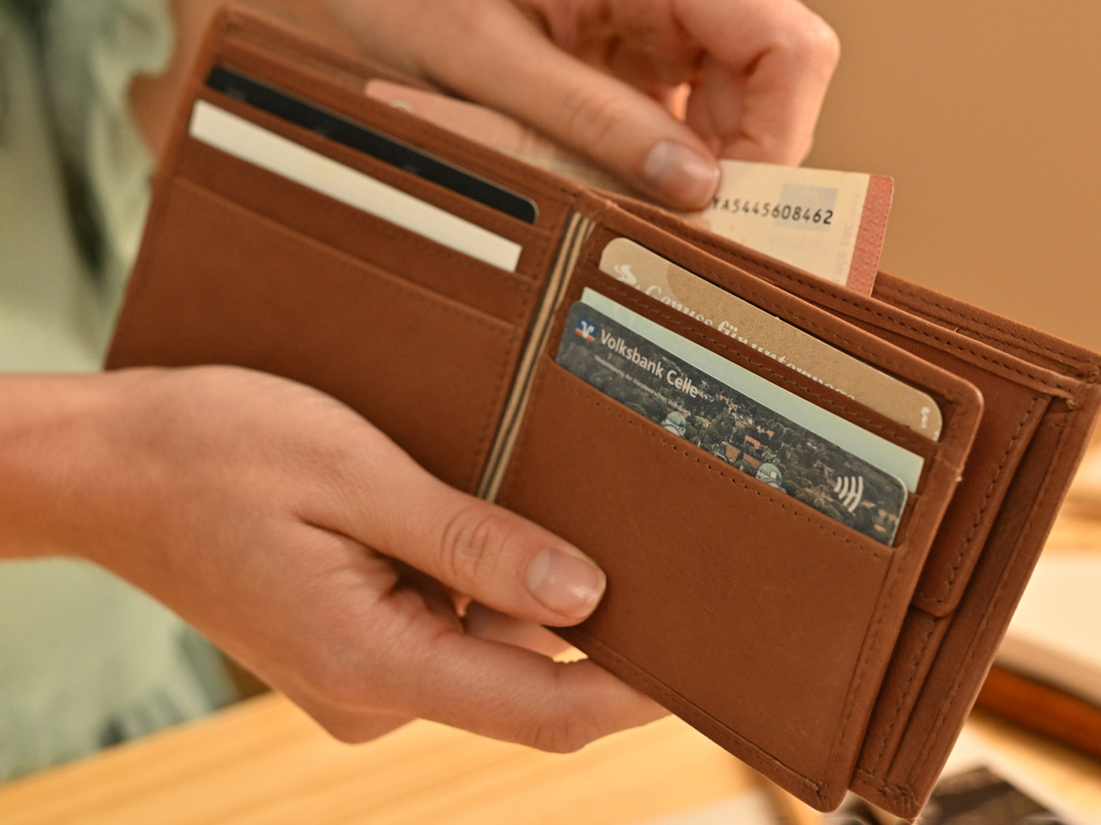 This beautiful leather wallet offers you enough space for everything you need in your wallet.