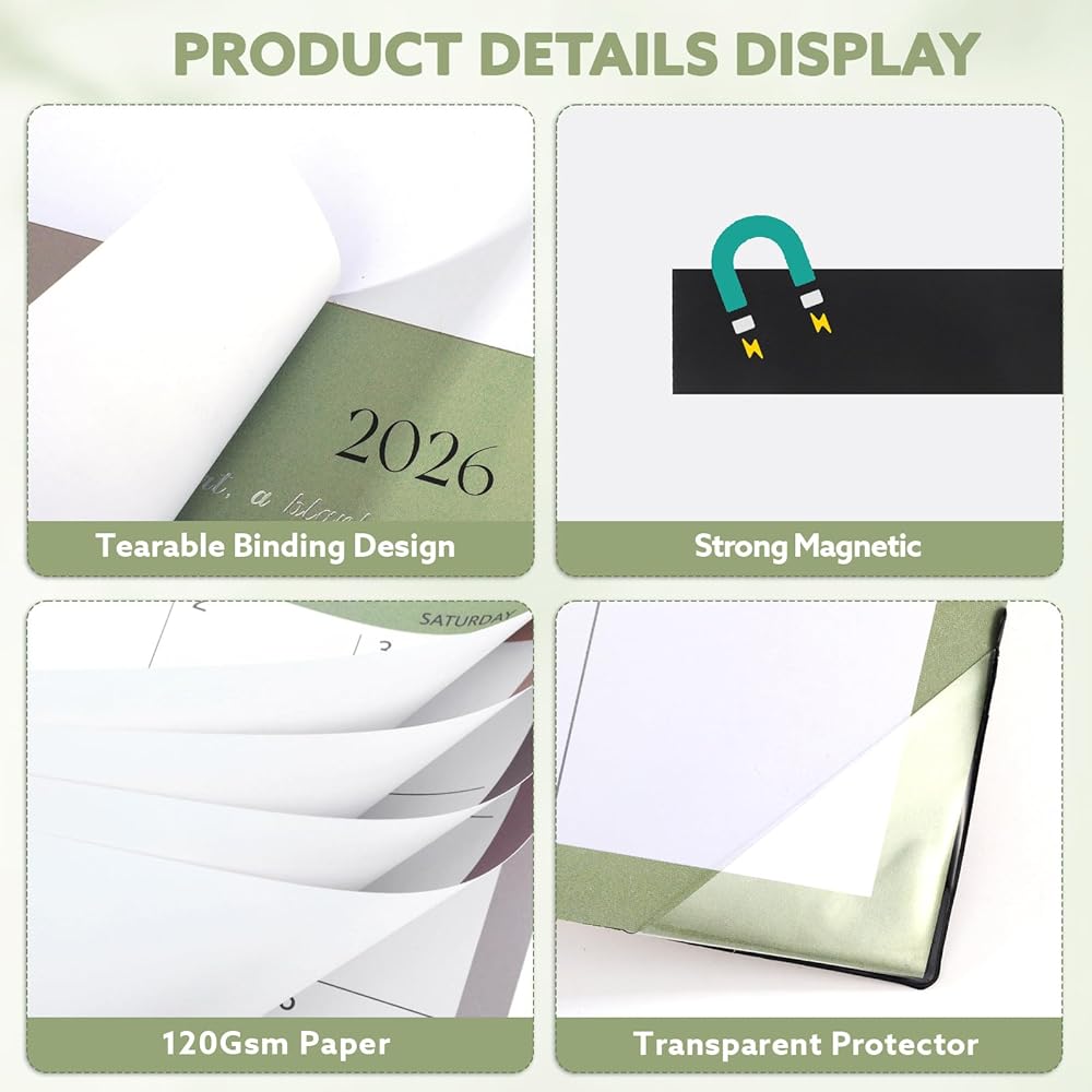 【120gsm Paper】The magnet calendar for fridge 2025-2026 is made of 120gsm paper, not easy to bleed and allows smooth writing. All the papers are stuck together by the glue at the top and can be easily tear off