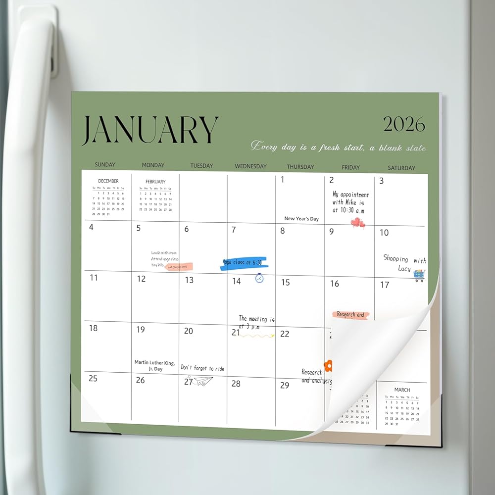 【Wide Applications】The refrigerator calendar 2025-2026 can be used in the classroom , home or office, to facilitate setting monthly goals and plans, tracking daily life, paying attention to upcoming holidays, etc. It can also be given as a Christmas or New Year gift to family and friends.