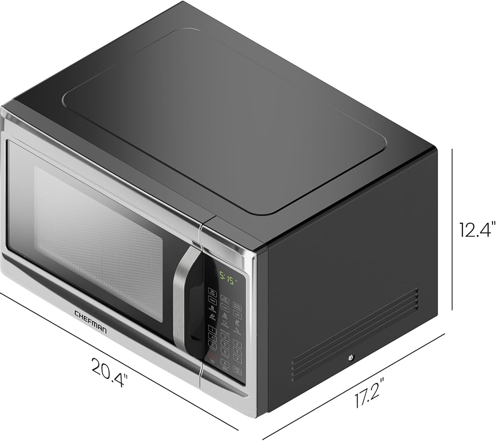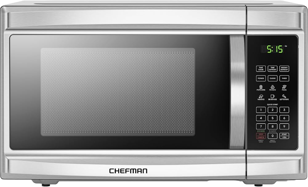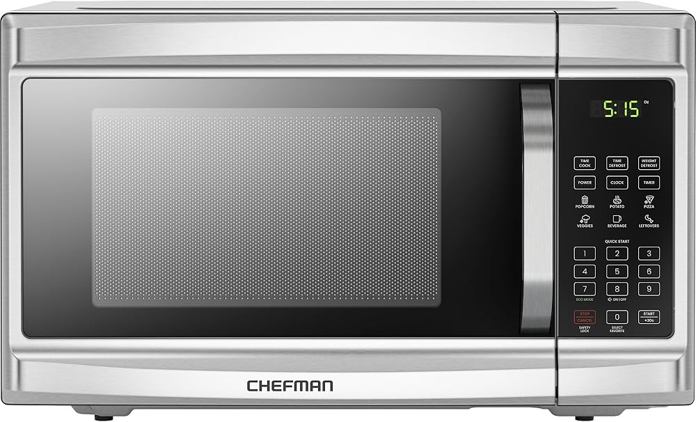 The Chefman Countertop Select 1.1 cu. ft. large capacity microwave offers high-power cooking at the touch of a button. With 6 food presets, +30 seconds button, multiphase cooking, and memory function, microwaving is faster and more convenient than ever. Save on energy use with eco mode, cook quieter with the mute option, or protect little ones with the childproof safety lock option. Purchase includes a 1-year assurance from Chefman. For information on how to use your product, scroll down for a PDF User Guide. 1000 Watts/120 Volts–RJ55-SS-11