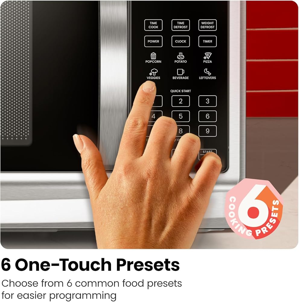 EXPRESS COOK: 6 presets for popcorn, potato, pizza, veggies, beverages, and leftovers take the guesswork out of perfectly cooked food