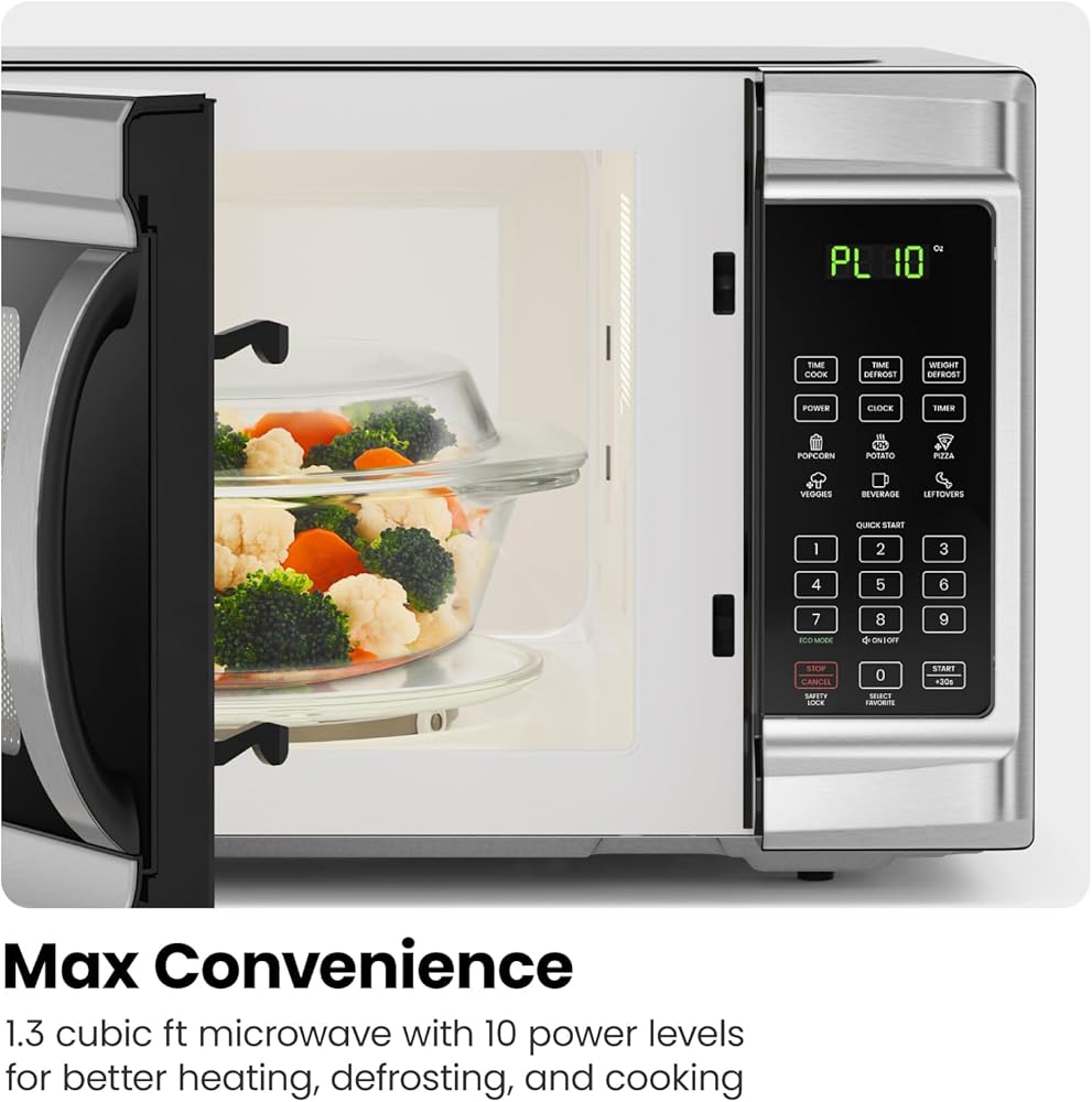 LOW TO HIGH POWER: 1000 watts with 10 power levels to heat, defrost, cook, and more all in one compact microwave oven