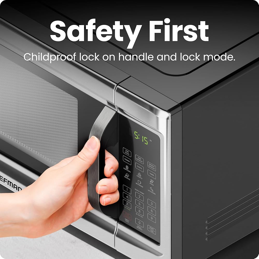 SAFETY Lock: Childproof lock mode prevents the microwave from being started. Hold the STOP/CANCEL button for 3 seconds to turn on and off
