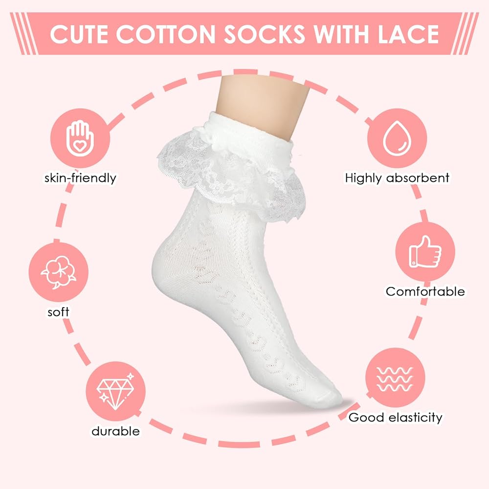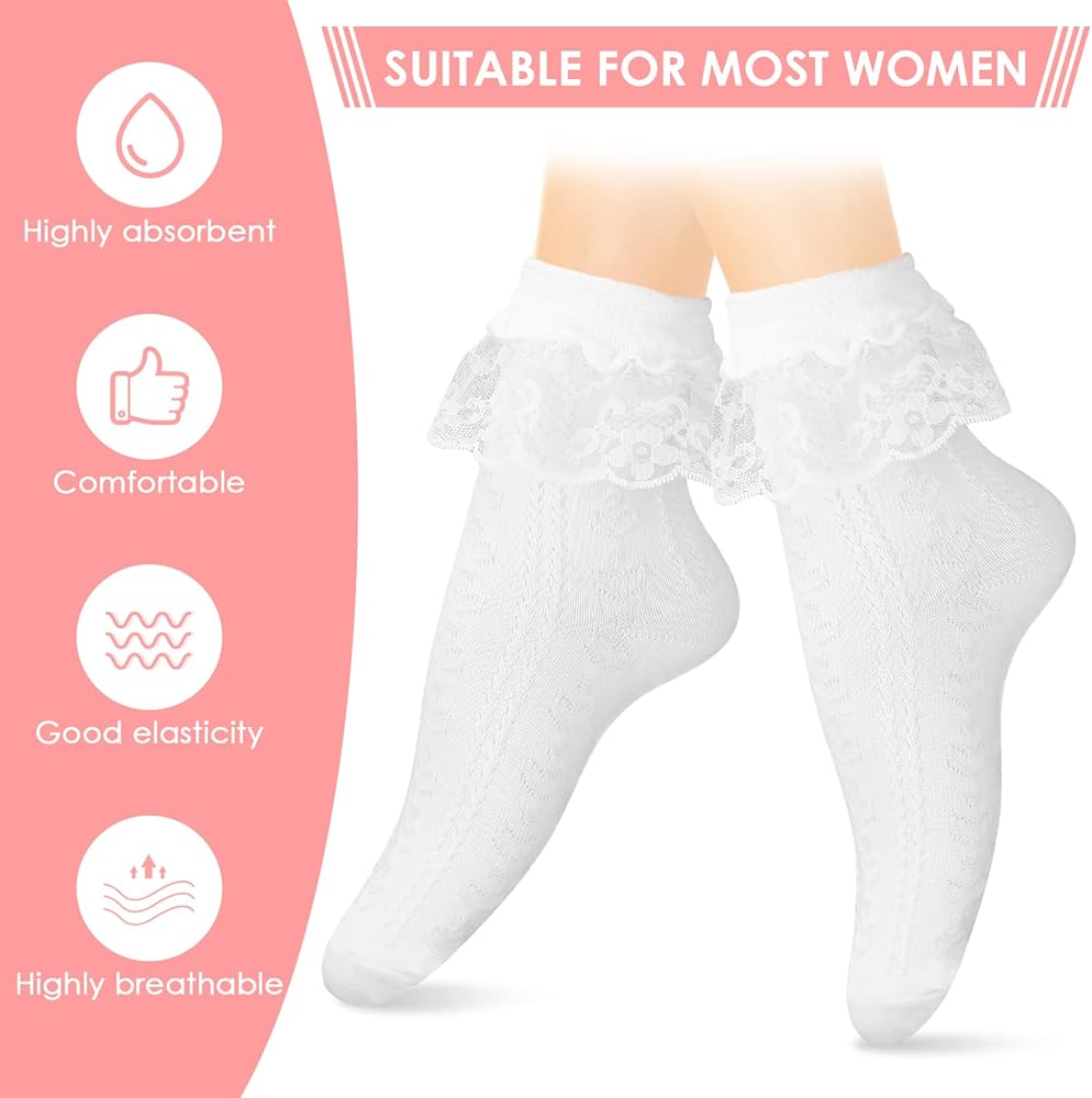 [Soft Fabric] The ruffle socks are made of high-quality cotton and lace, soft and skin-friendly, breathable and comfortable to wear. Our frilly socks women have good elasticity that keep your feet comfortable all day round