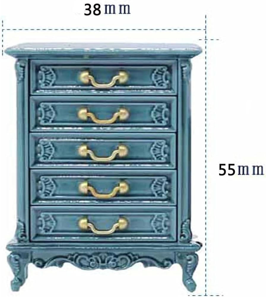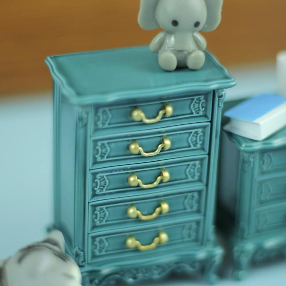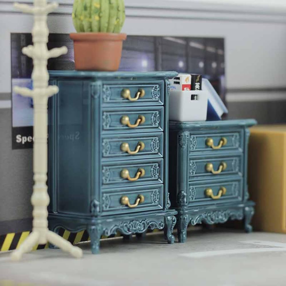 In a stylish blue color, this miniature high drawer cabinet is a unique addition to your dollhouse decor.
