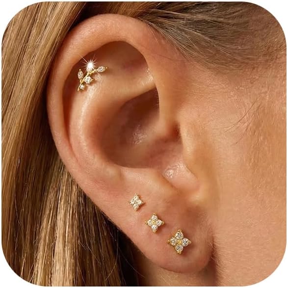 【Stud Size】The three pairs of stackable diamond flower stud earrings come in sizes: 3mm, 4mm, and 5mm, while the cartilage stud is 11.5mm. They can be worn as a set or mixed and matched with other earrings.
