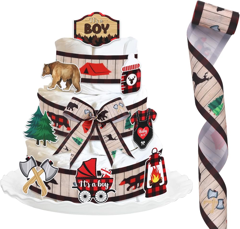 Package Included: You'll get 2 roll of 5 yards long grosgrain ribbon and 8 winter element cards, which are double sided. This is the perfect diaper cake set for cute snowflake themed baby shower decorations.