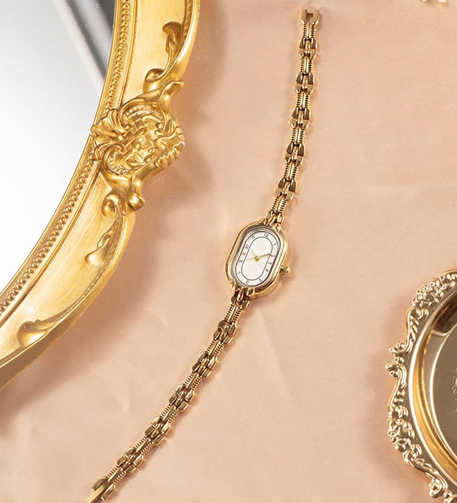 Luxury gold watches for women: Vintage oval case with perfect smooth radian, simple face, luxury gold plating, matching is so elegant and fashion.
