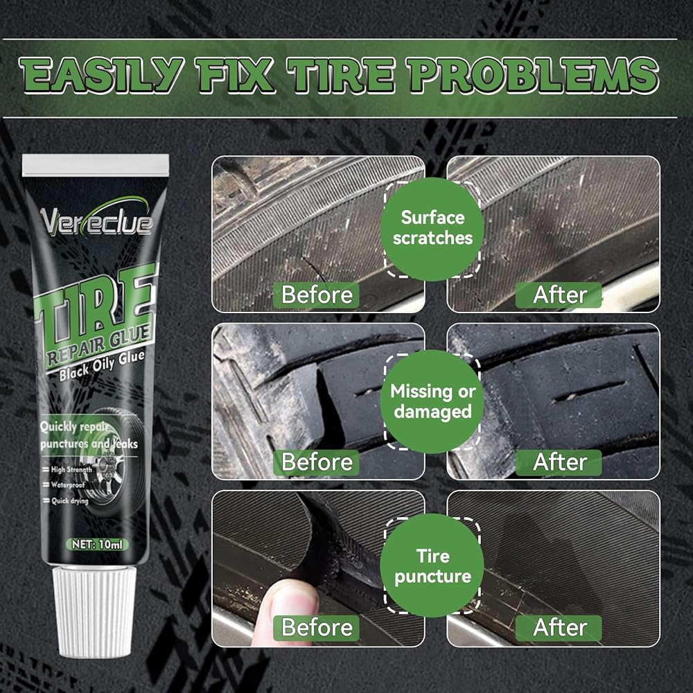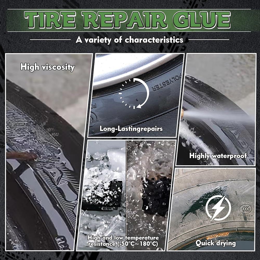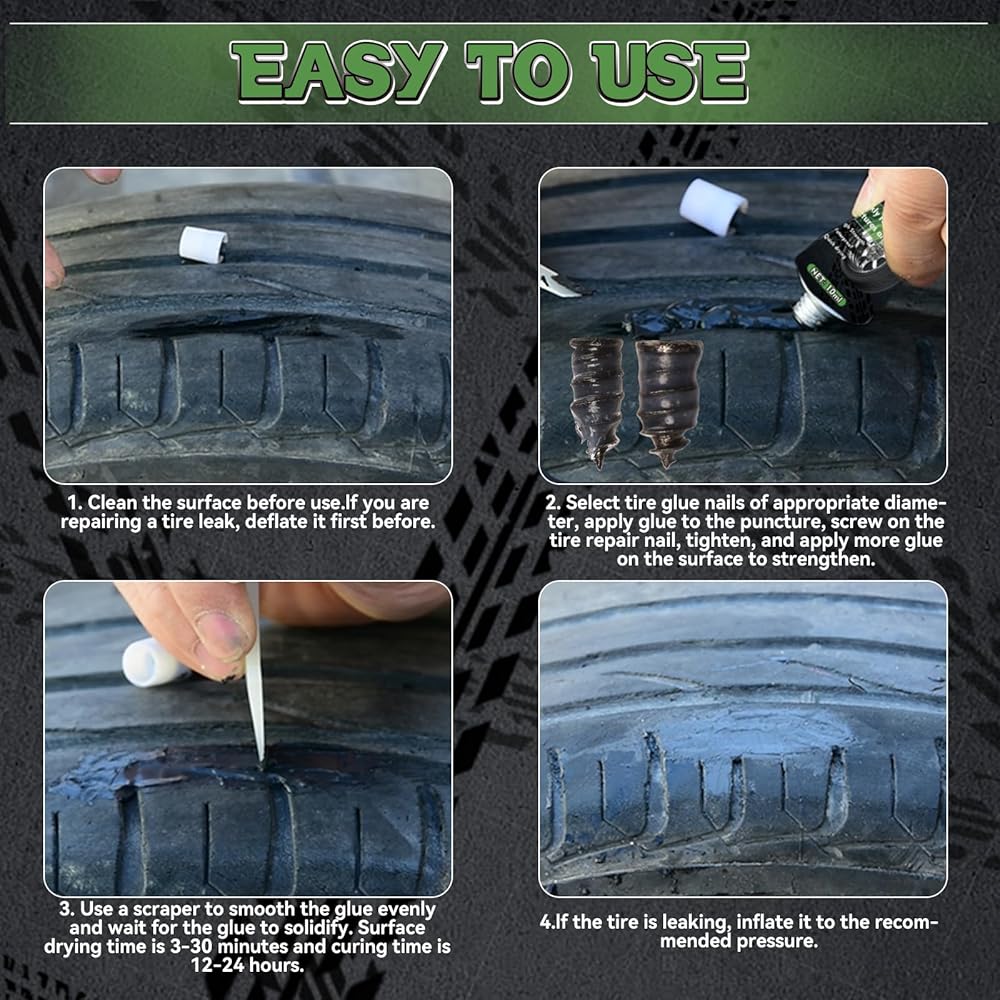 Powerful tire repair solution: Tire glue can repair scratches, cracks, tire sidewall puncture and cracking on the surface of car, dirt bikes, motorcycle, ATV, truck, tractor and lawn mower tires. Tire repair glue effectively seals punctures and prevents air leakage, ensuring you get back on the road with confidence