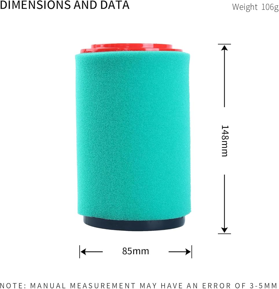 What You Get: 1 premium air filters + 1 pre-filters, air filter size Length: 5.94inch × Outside diameter: 3.39inch × Inside diameter: 1.99inch.Buy with confidence with a 180-day warranty.