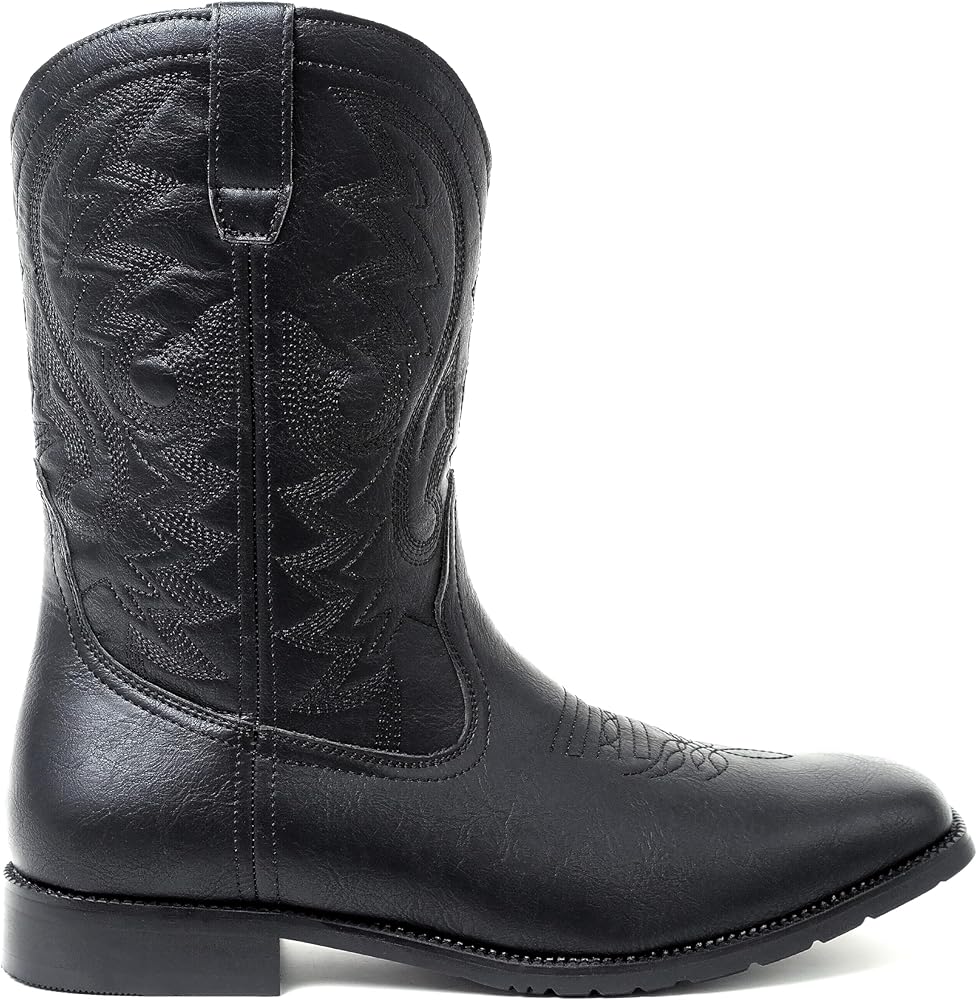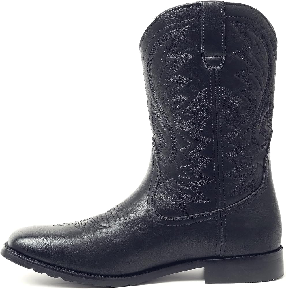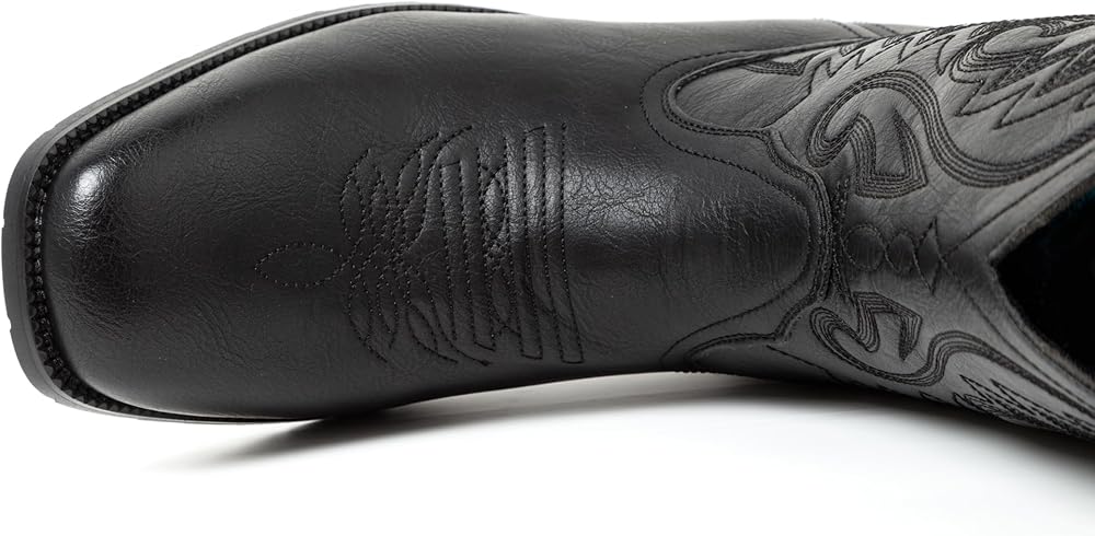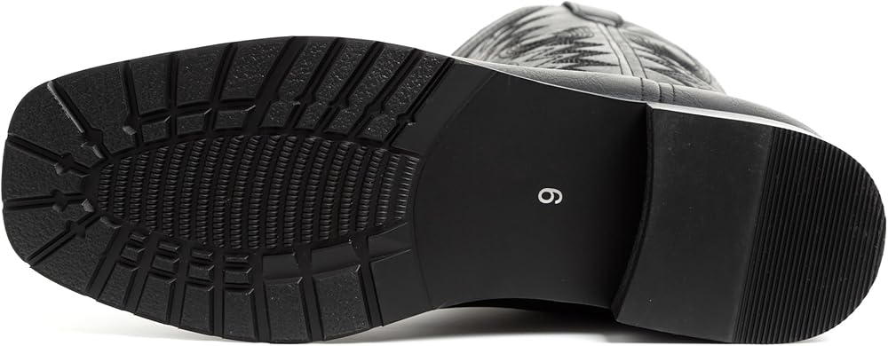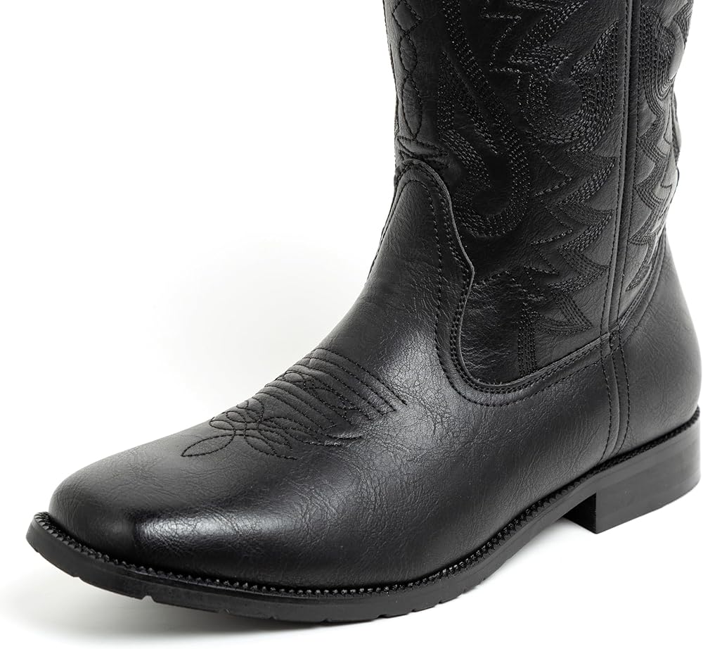 Authentic Western Style: These mid-calf boots feature an embroidered cowboy design with a square toe for a rugged, classic look.