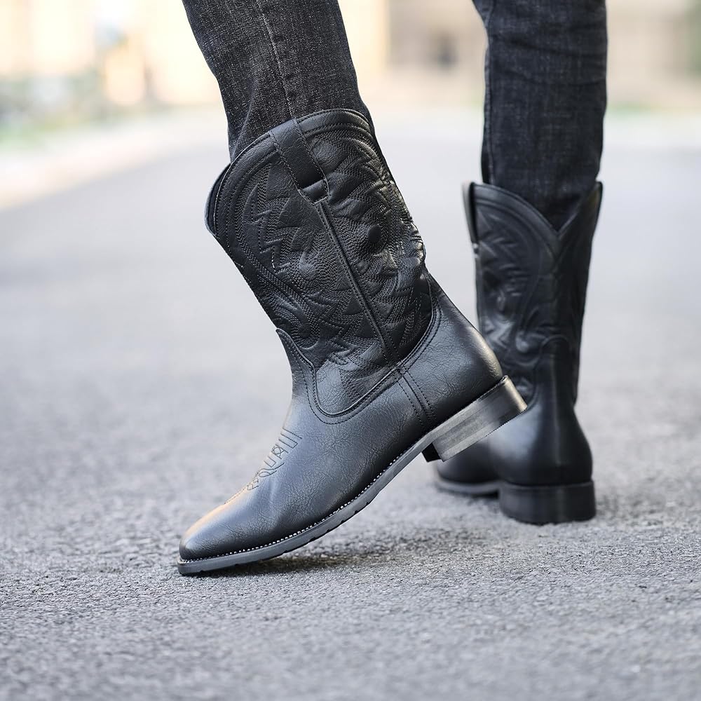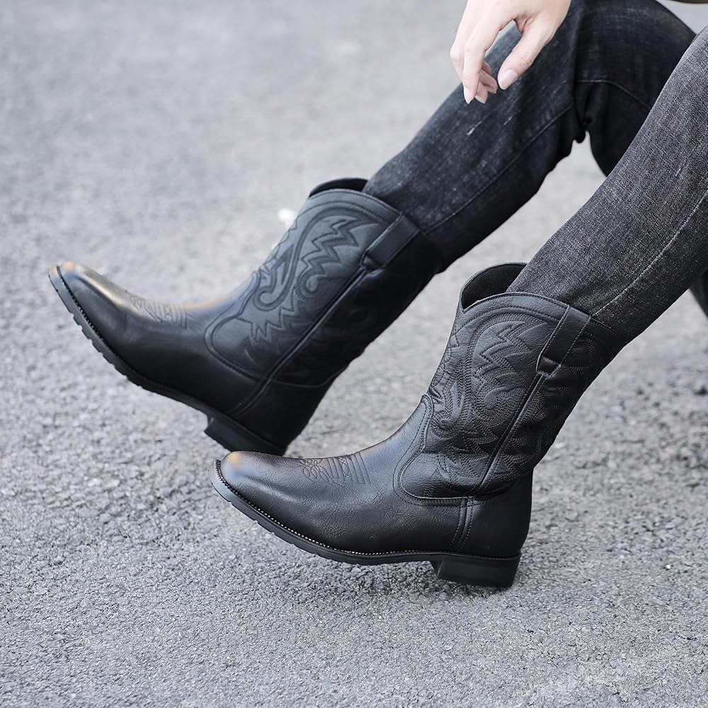 Step into the rugged, timeless style of the West with these Men's Cowboy Embroidered Square Toe Mid-Calf Boots. Crafted with meticulous attention to detail, these boots boast intricate embroidery that adds a touch of flair to the classic cowboy silhouette. The square toe design offers a distinctive look, while the mid-calf height provides ample coverage and support. Whether you're hitting the dusty trails or strolling through town, these boots will keep you grounded in authentic Western heritage. Pair them with your favorite jeans and a crisp button-down for a look that exudes confidence and character. With their durable construction and premium materials, these boots are built to withstand the demands of an active lifestyle. Embrace the spirit of the American frontier with every step.