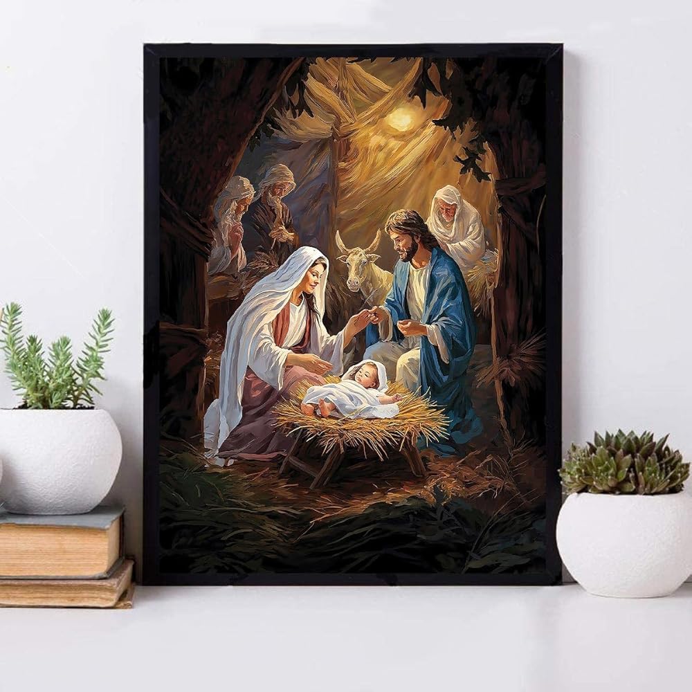 LWZAYS Nativity Scene Paint by Number Kit for Adults Canvas,Christmas Jesus Born Paint by Numbers for Adults Beginners Canvas, Christian Religious Painting by Numbers for Gift Decor - 16x20Inch