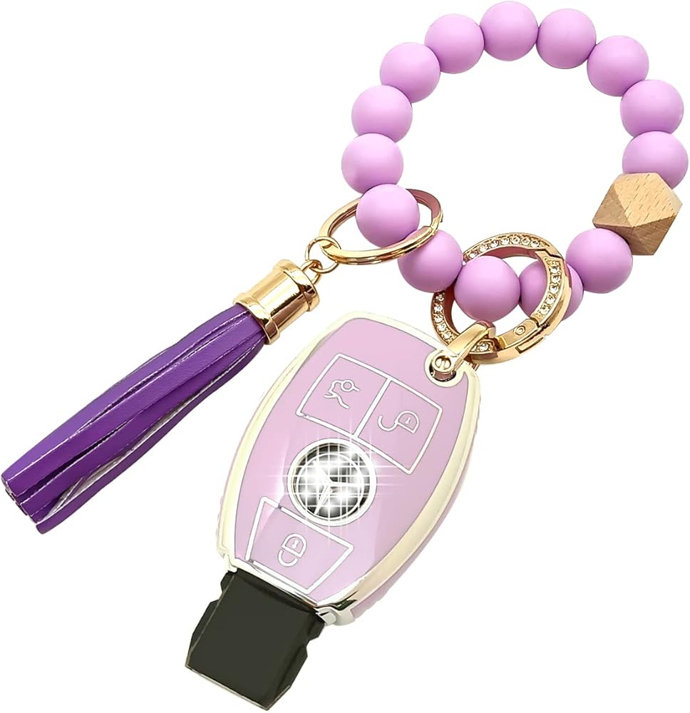 Fits for Mercedes Benz Key Fob Cover,Purple Beaded Key Holder Fits for Mercedes Benz C E S M CLS CLK G Class Car Key Accessaries (for Mercedes Benz A3)