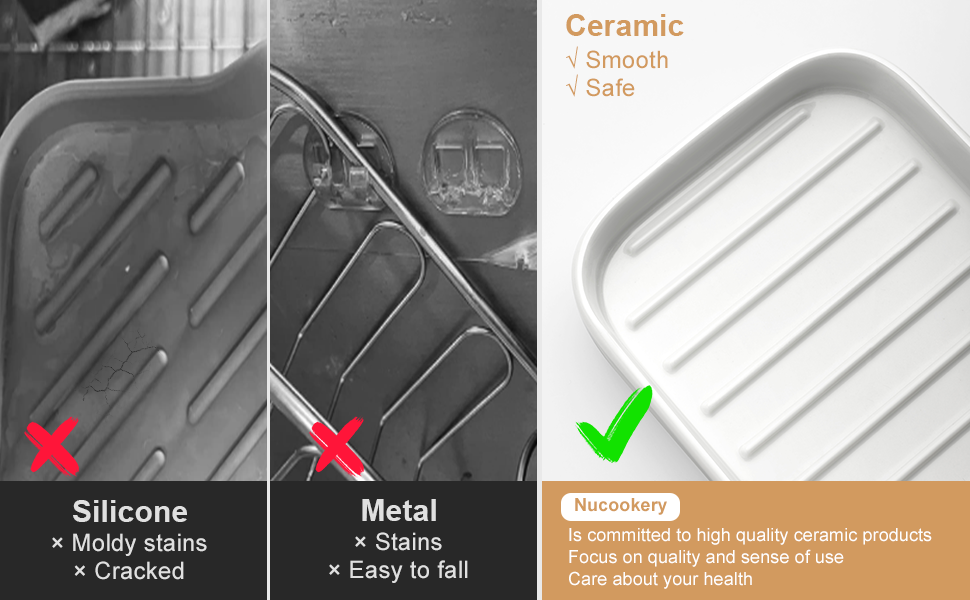 - Durability tray - Each cleat in this size 7"*3.5*0.7" white ceramic tray is 0.47" apart,anti slip bar protrusion height is 0.08",it effectively holds up the soap sponge to keep it dry