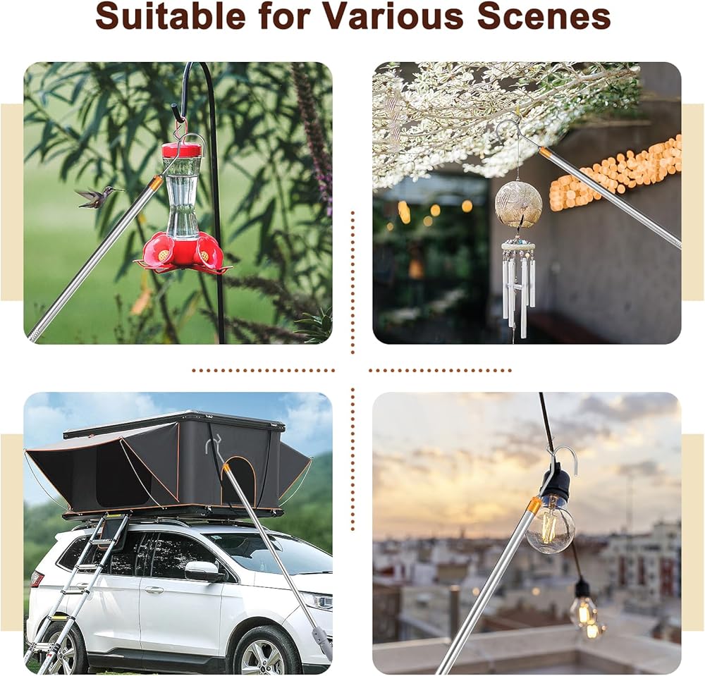 【Convenient Access】The clothes hook pole facilitates easy access to items stored in closets and other hard-to-reach areas. Lightweight and sturdy, it is ideal for hanging Christmas lights, flower pots, wind chimes, bird feeders, and more.