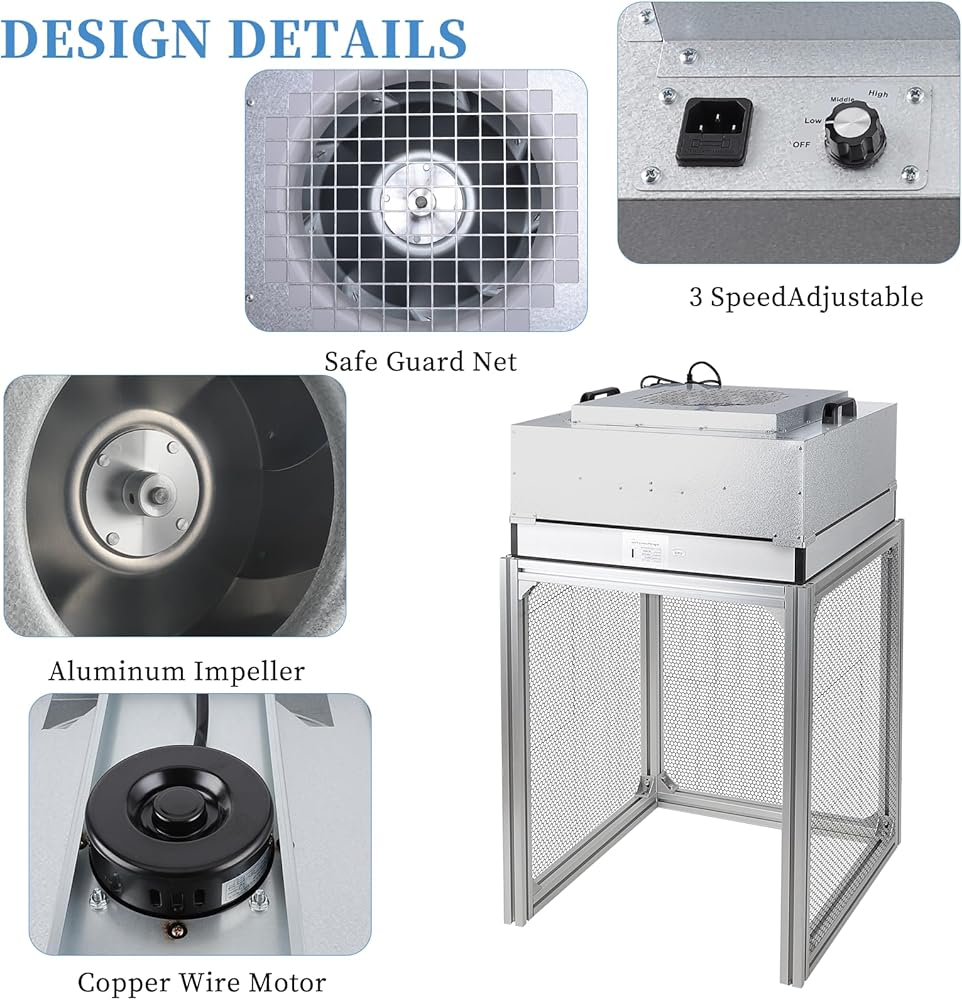HIGH QUALITY: The vertical laminar flow hood and bracket are made of aluminum material. Firm and not easy to deform. Long service life. And the product is easy to install and disassemble. Easy to carry.