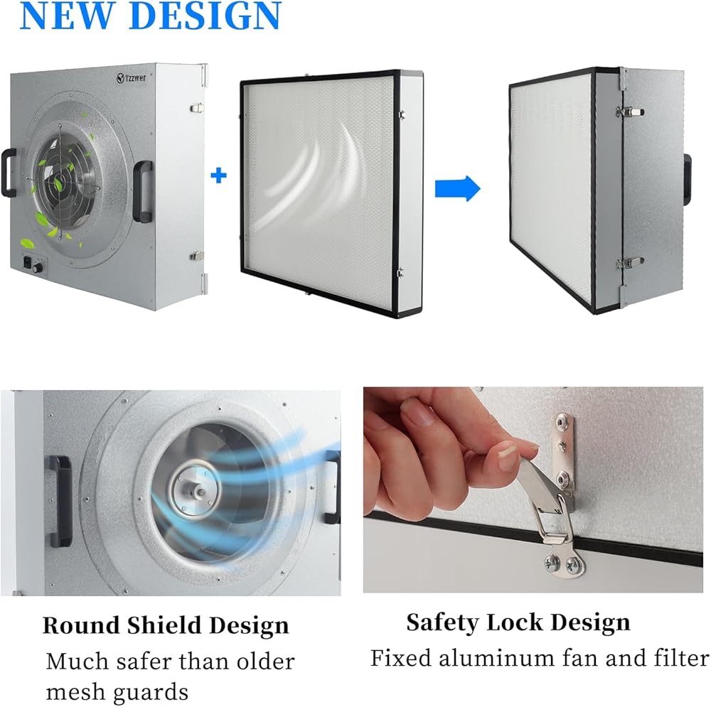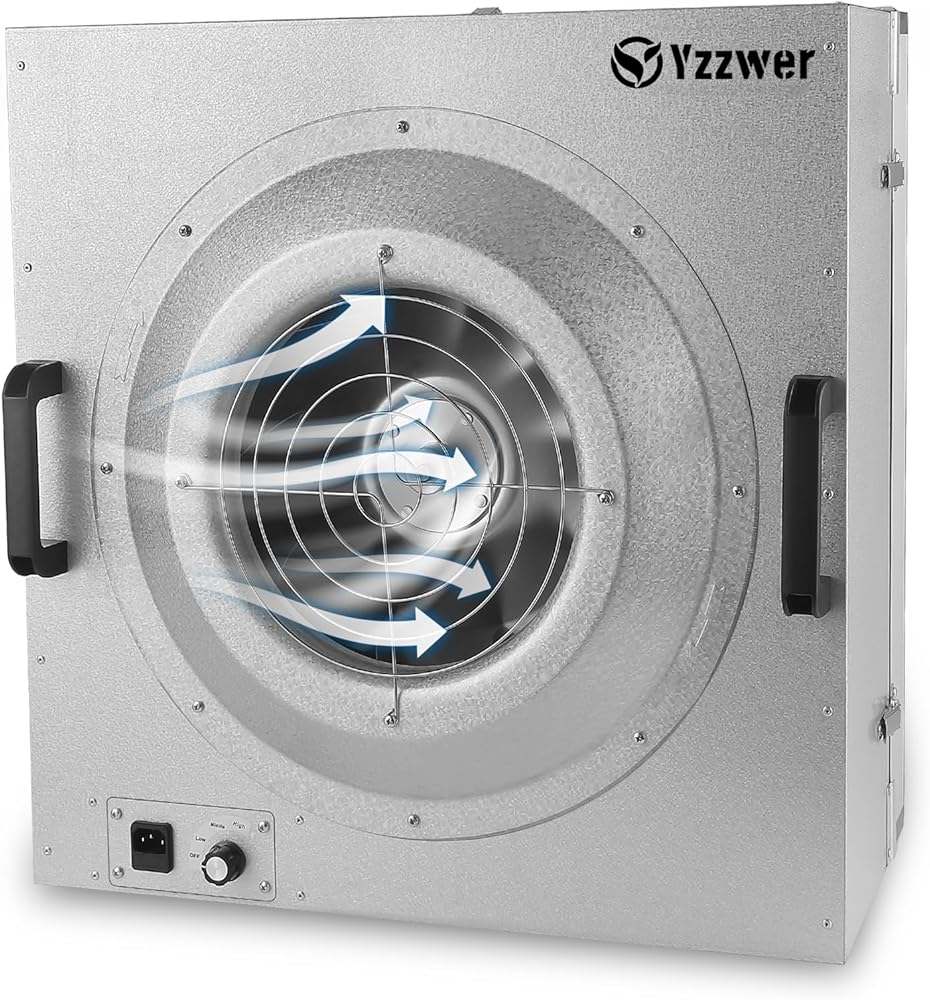 CONVENIENT OPERATION: The fan filter is controlled by a push-button, three-position adjustment. The average air velocity is 0.45-0.60 meters per second. The airflow can be increased up to 800 m³/h. Airborne particles can be drawn in and out more efficiently.