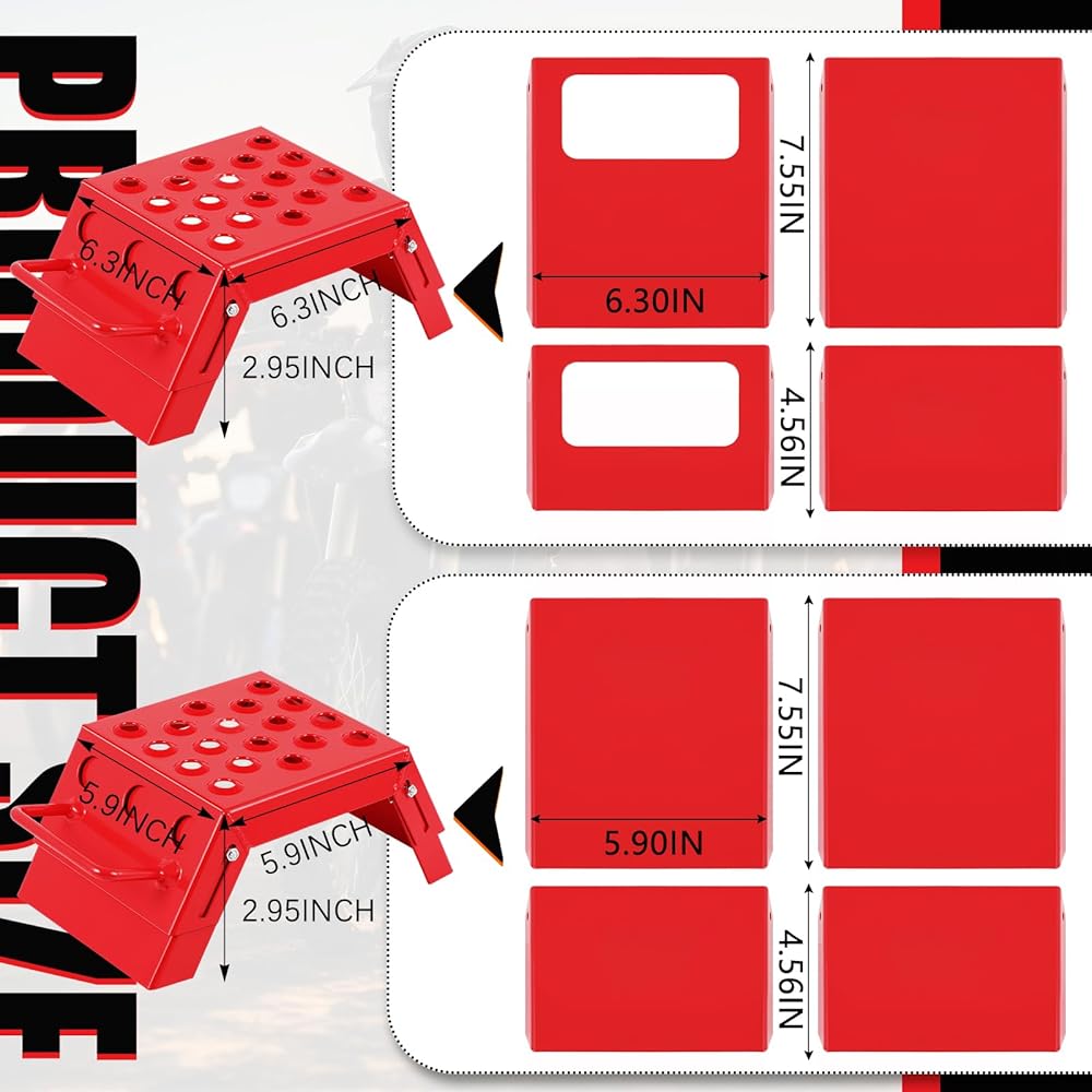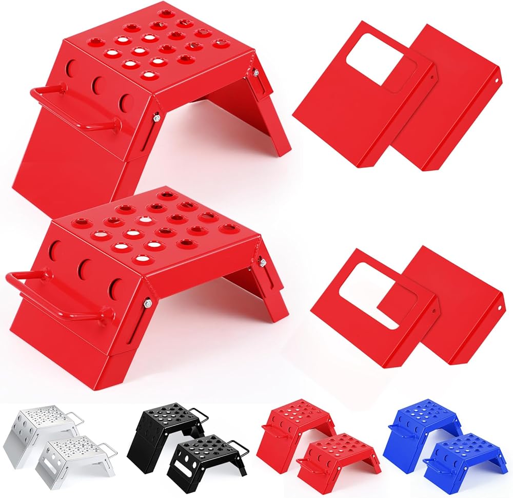Portability and Innovative Design: mastery lies in the cheese grater surface design of the motorsport adjustable step stool that remove mud from the boot bottoms, avoiding unpleasant slips; Crafted with interlocking handles, you can lift the pair with one hand, signifying easy portability; Their stackable design, differing sizes of about 15 x 15 x 7.5 cm and around 16 x 16.5 x 7.5 cm further allows you to economize storage space