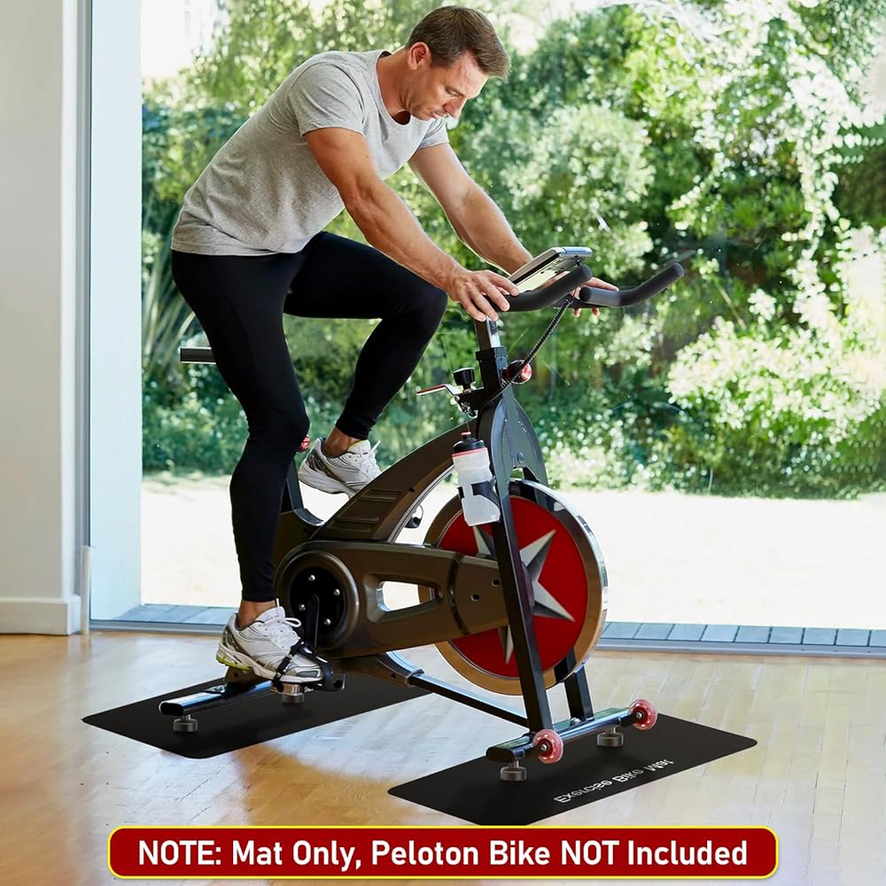 【Suitable Size for Peloton Bike】-- The size of our peloton bike non-slip mat is 23.6 x 11.8 inches (60 x 30 cm), which is suitable for most bike trainer & rowing machines on the market. It's 0.12 inches (3mm) thick and made of 3 layers of composite material. NOTE: Mat only, machine not included