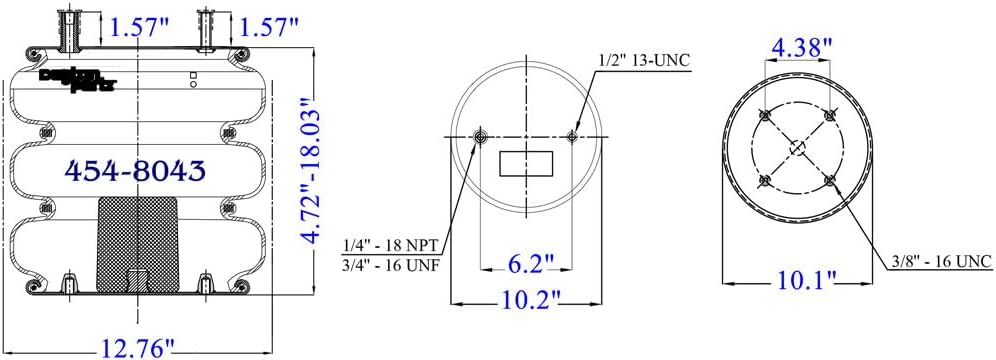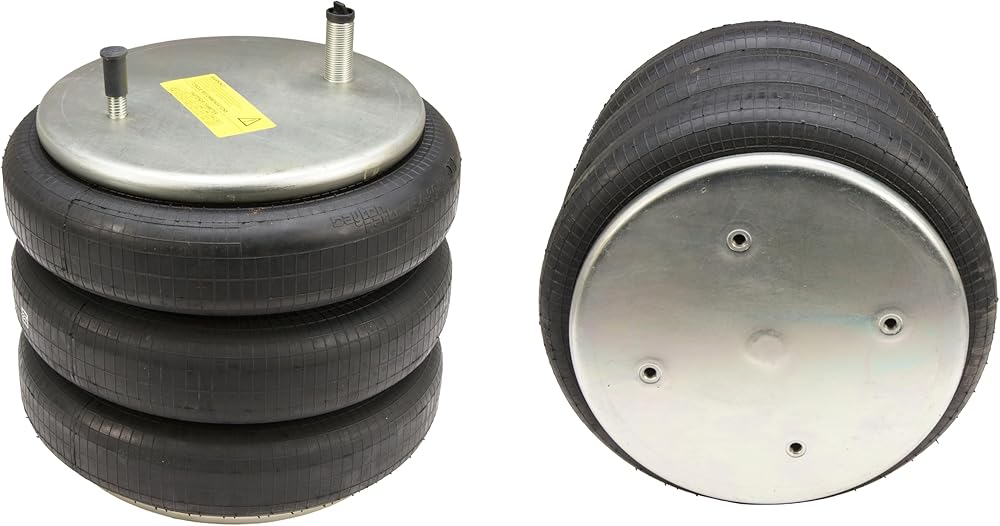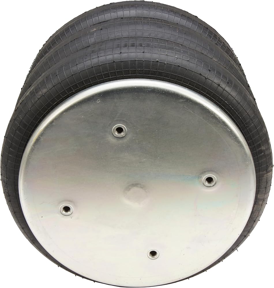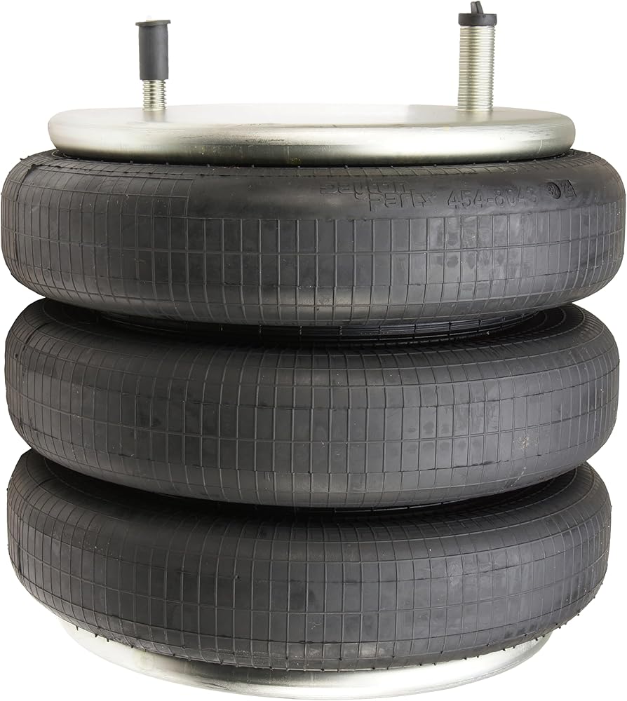 454-8043L Air Spring, Triple Convoluted, 4.72" Collapsed Height, 10.2" Top plate Diameter, 10.1" Bottom Plate Diameter, Two Stud Top Plate Four Hole Bottom Plate