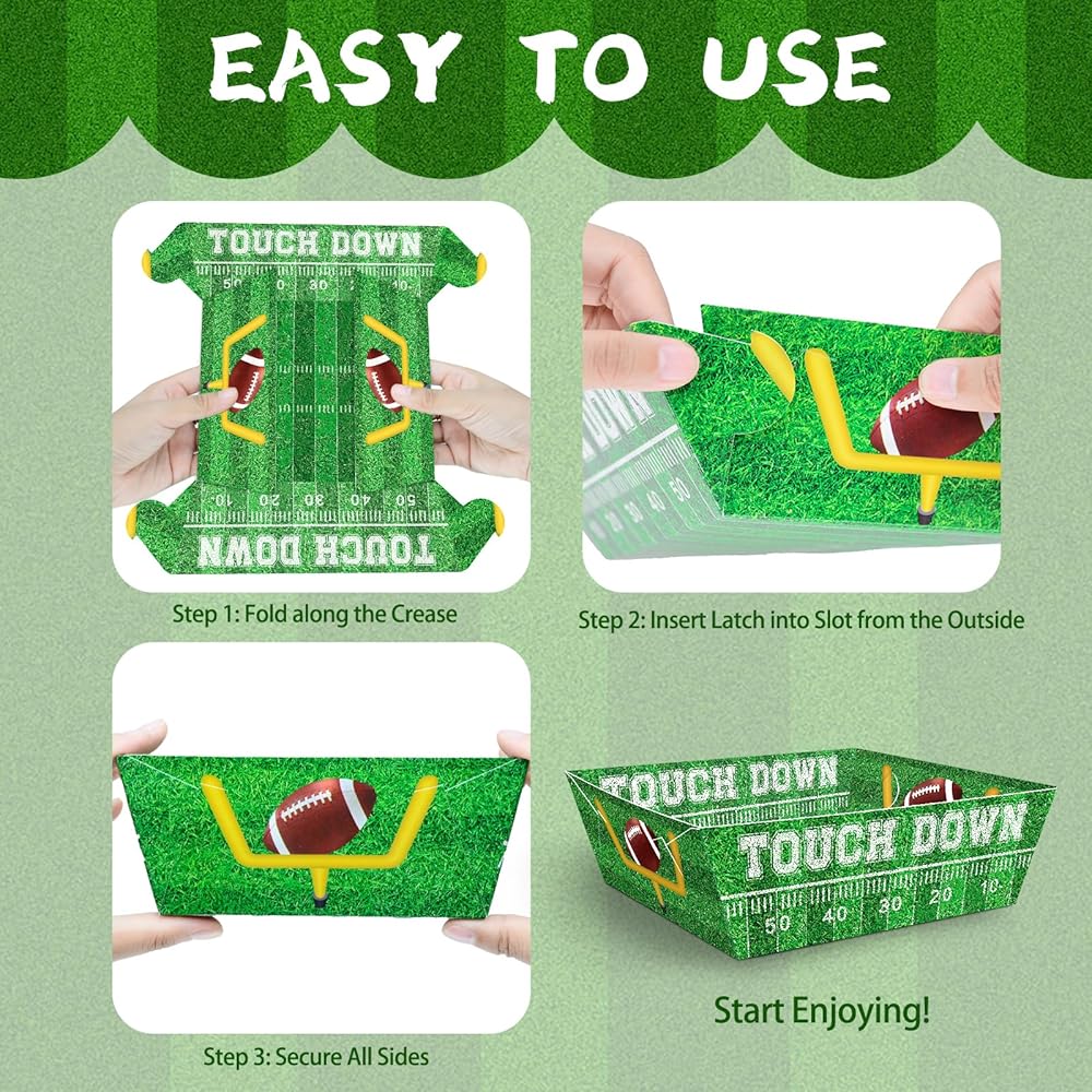 Easy to Use: It is very easy to fold the food trays and does not require additional glue. Choose these food trays to spend a wonderful football party together. I believe your family and friends will love these practical food trays.