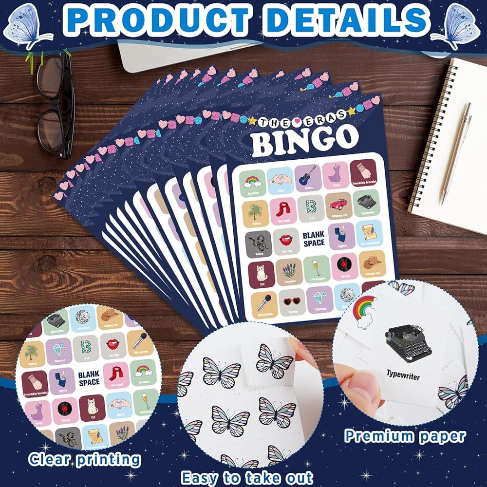 Easy to use: The music-themed bingo cards set comes with a game guide card. All you have to do is open the package and start playing. You can share your love of the singer's music in the process of playing the game, and experience fun bingo games together. All your guests will love this party game.