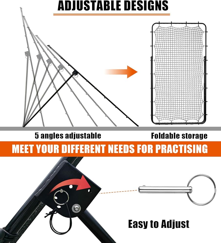 5 ADJUSTABLE ANGLE: Our this baseball/volleyball rebounder is designed with a pin design, 5 adjustable angles, so that you can always find the right angle bevel when you are practicing, simulating opponents attacking from different angles, so that you can better achieve the purpose of training and enhance your ball skills. Various angles of slant adjustable design, suitable for different skill levels of players training