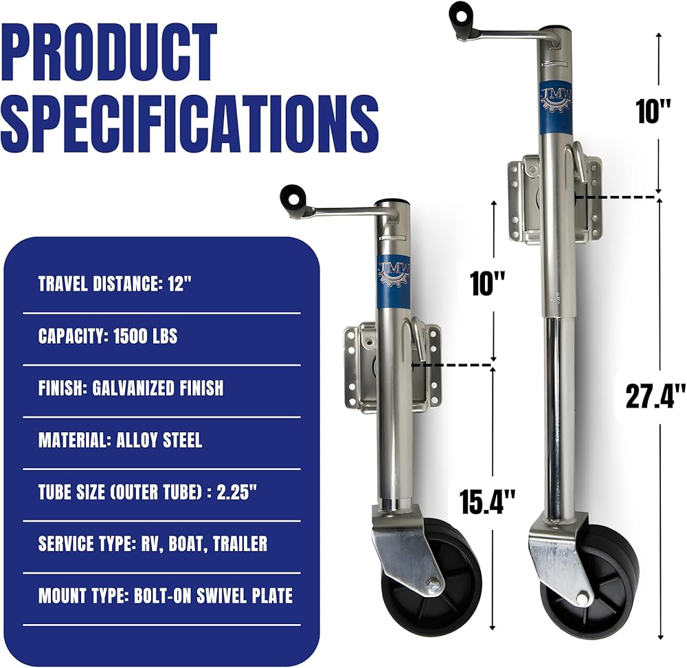 Enhanced Load Capacity: With a lift capacity of 1,500lbs, our trailer jacks are dependable and more than capable of withstanding heavy loads from boats, RVs, and trailers.