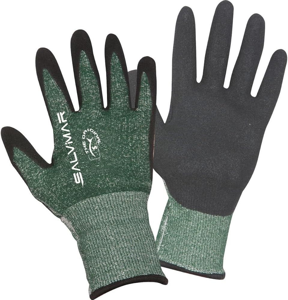 Looking for a tough pair of gloves for hunting? The Salvimar Dyneema Gloves will fit the bill! The use of continuous thread of Dyneema line make these gloves strong, durable and a pair of gloves you won't be replacing soon, no matter how hard you try and wear them. Dyneena is an ultra-high-molecular-weight polyethylene that has low moisture absorption and highly resistant to abrasion. The new robust palm is impregnated in nitrile for strength and a great grip for the hunt. Gloves have the tightest cuff and are designed as the toughest stuff. Gloves seams are sewn and they are available in multiple sizes.