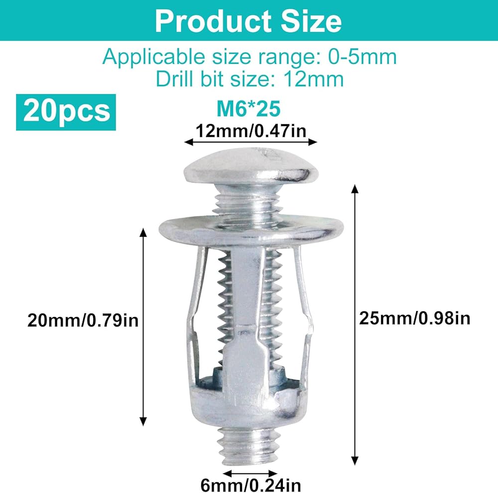 Packaging Size: You will receive 40 pieces of 1kg petal nut combination kit, with two sizes of 20 pieces each: M4 * 20mm, M6 * 25mm; M4 x 20 has a load-bearing capacity of up to 10kg, and M6 x 25 has a load-bearing capacity of up to 15kg. The rich quantity perfectly meets your daily use and replacement needs