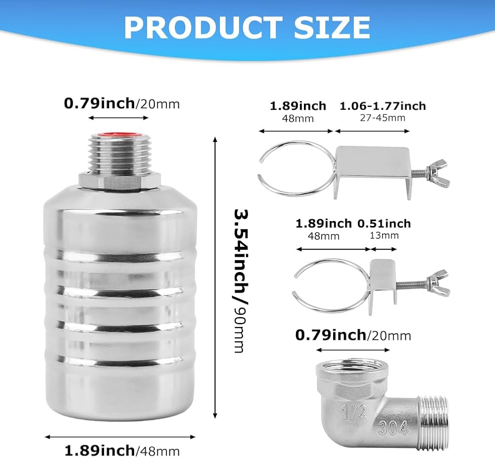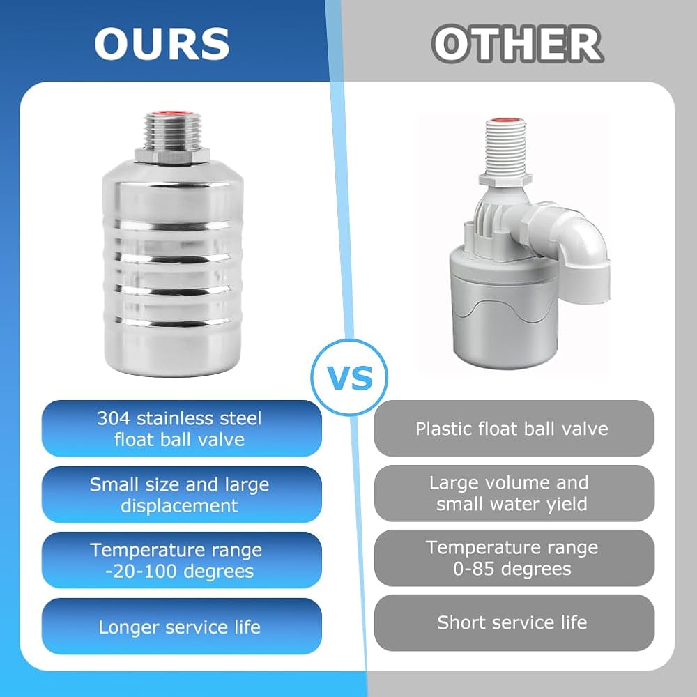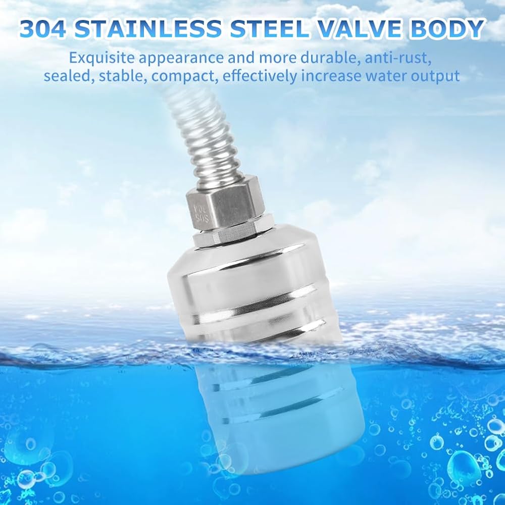 【MAIN MATERIAL】304 stainless steel valve body, exquisite appearance and more durable, anti-rust, sealed, stable, compact, effectively increase water output, more water output than traditional float valve