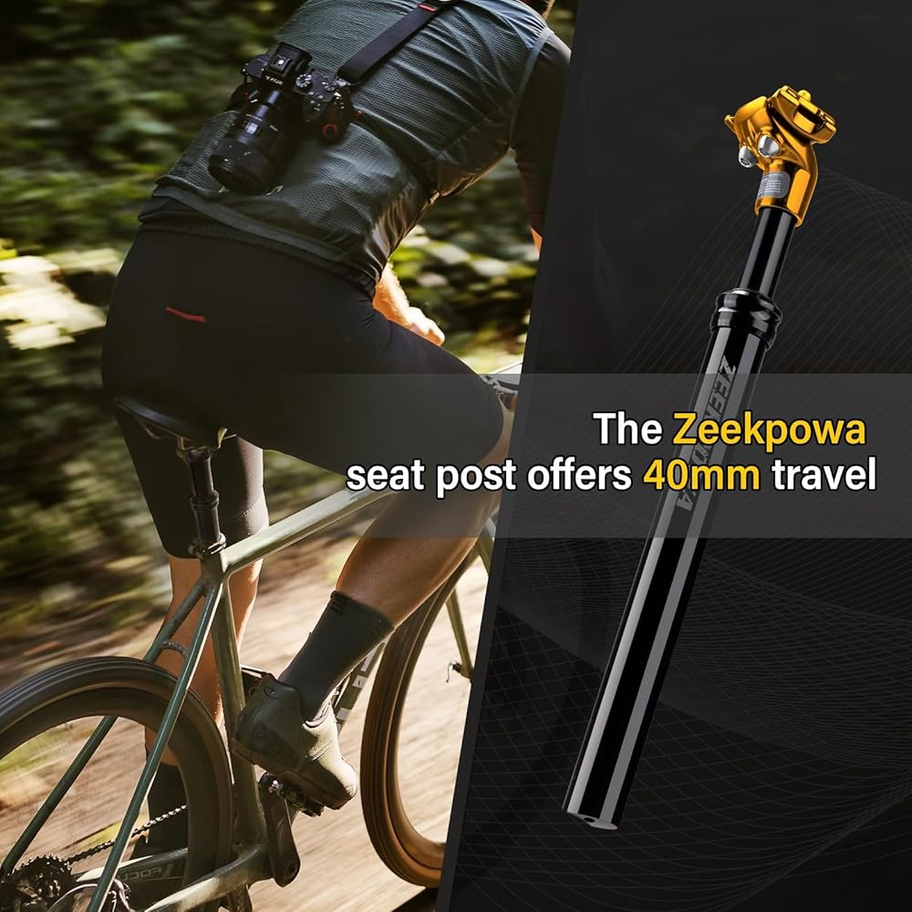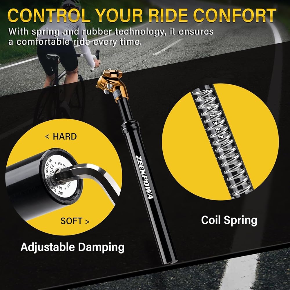 Suspension Seat Post for Unisex Bikes - Adjustable Cushioning, 40 mm Adjustment, Perfect for Mountain Bike, Road Bike, Travel Tourer, Folding Bike, City Bike, E-bike