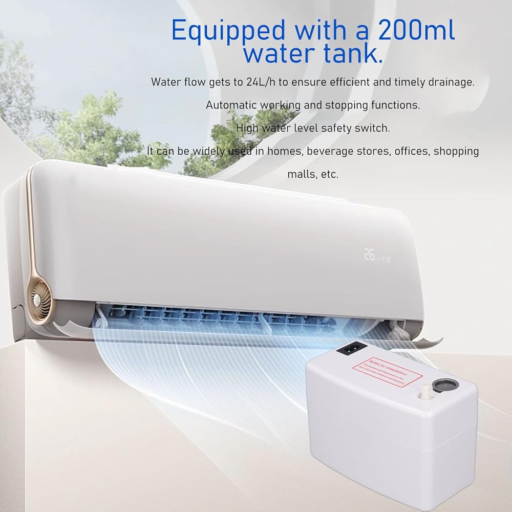 200ML WATER TANK: The condensate pump is equipped with a 200ml water tank, which is enough to hold the amount of water that needs to be drained from the ice maker. The water flow rate reaches 40L/h, ensuring efficient and timely drainage.