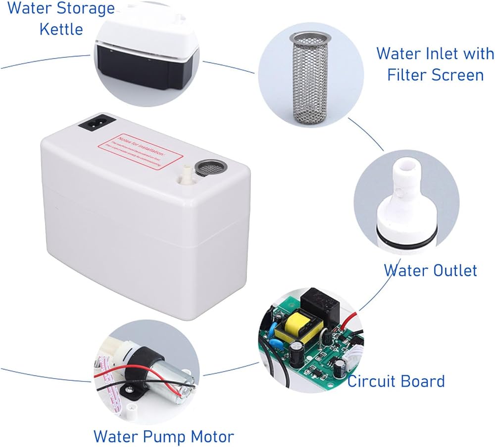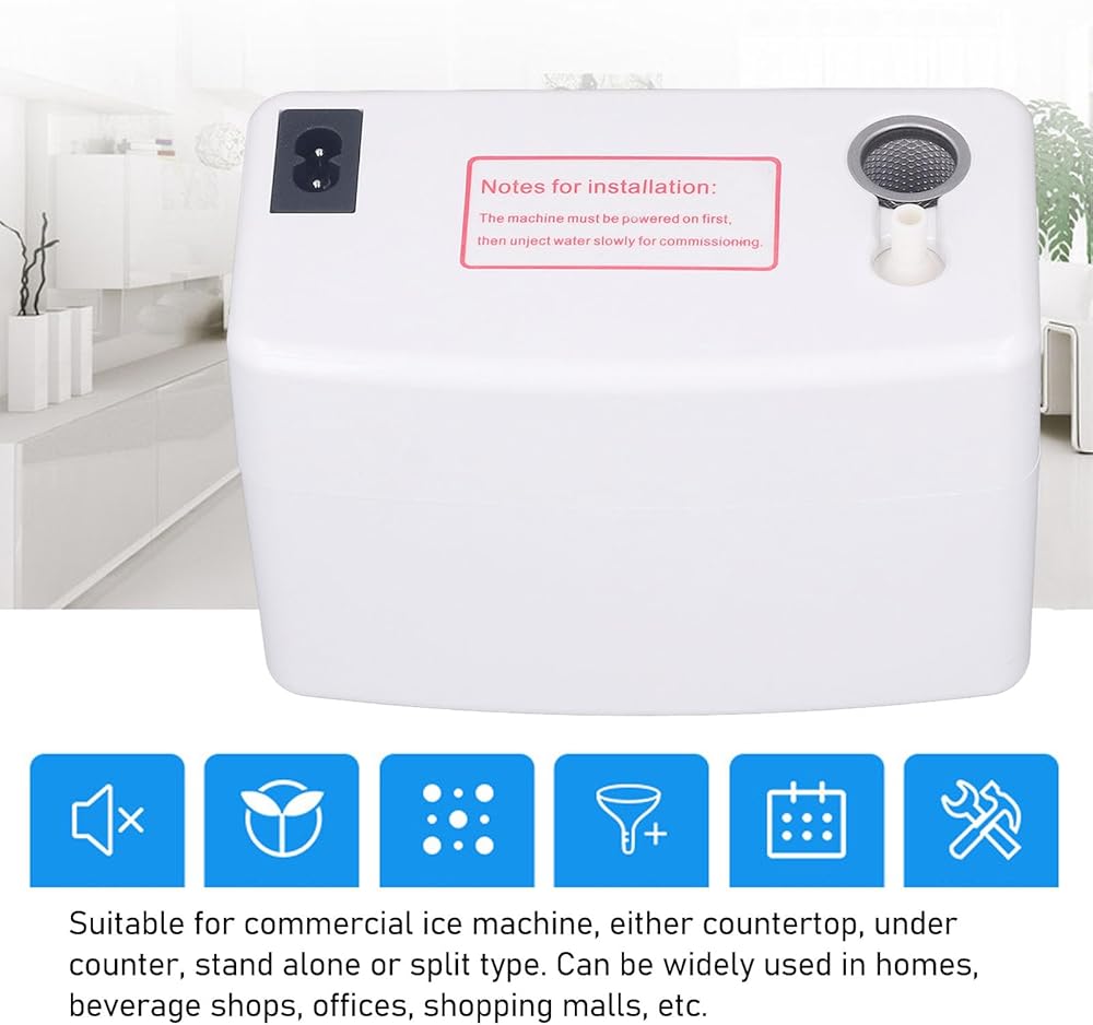 WIDE APPLICATION: The miniature automatic condensate pump is perfect for commercial ice machines, whether countertop, under counter, freestanding or split. It can be widely used in homes, beverage stores, offices, shopping malls, etc.
