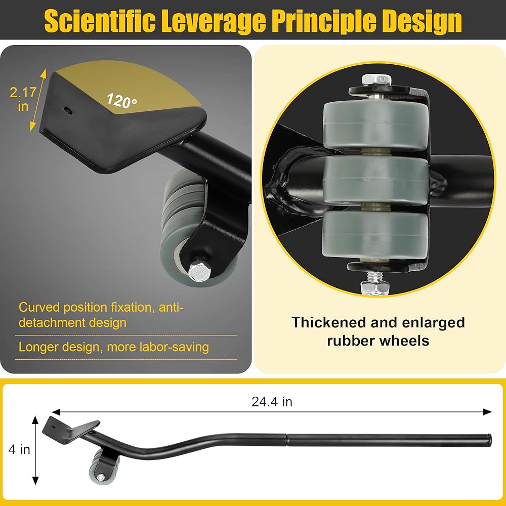 【Furniture Dolly & Lifter Tool】 The furniture moving tool set includes: 4*furniture movers, 1*carbon steel extended furniture lift.