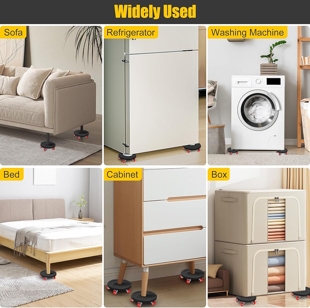【Widely Used】 This furniture movers with wheels are suitable for home, workshop, office, garage and many other scenarios, when you need to move sofa, refrigerator and other heavy objects, you can do it alone easily. Furniture mover set is suitable for use on wooden floors, concrete floors, tile floors and other easy-to-friction floors.