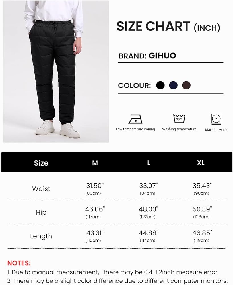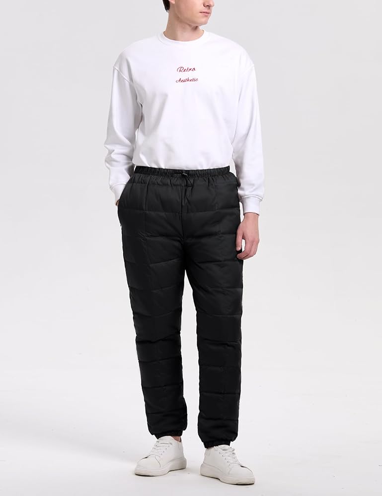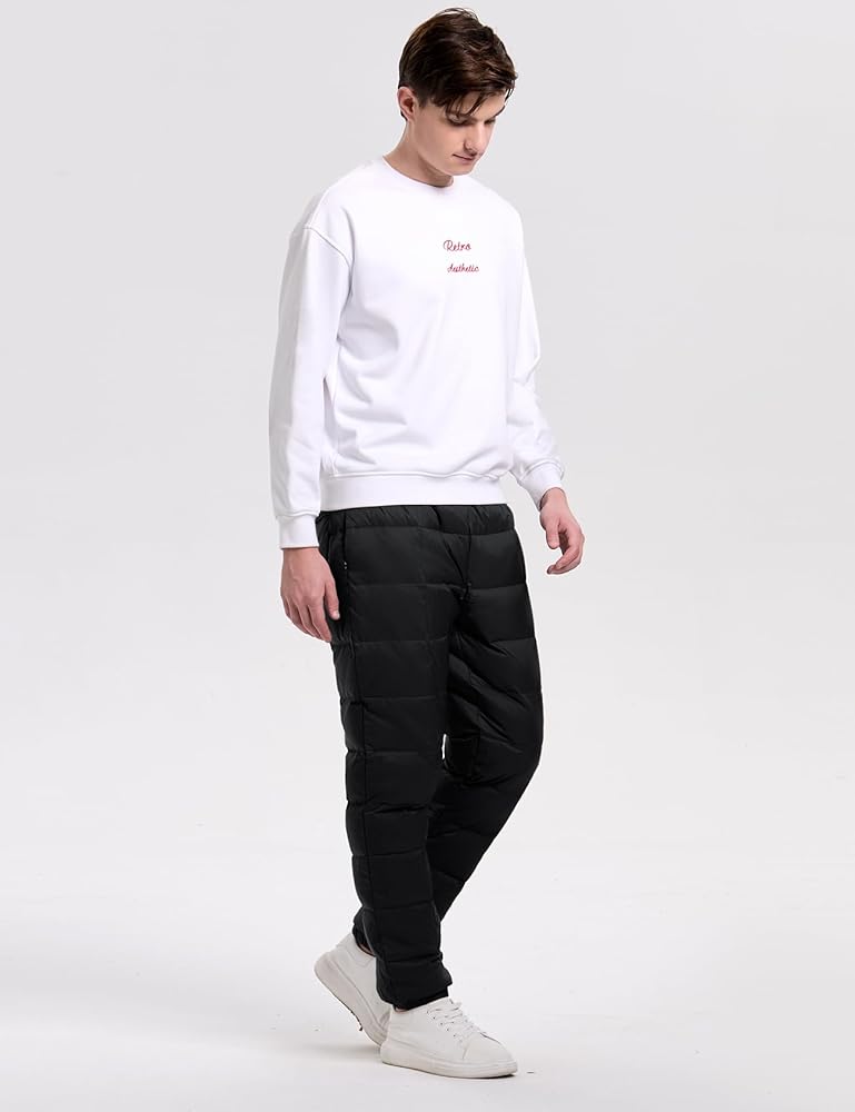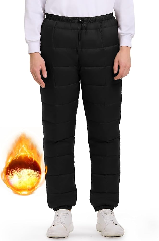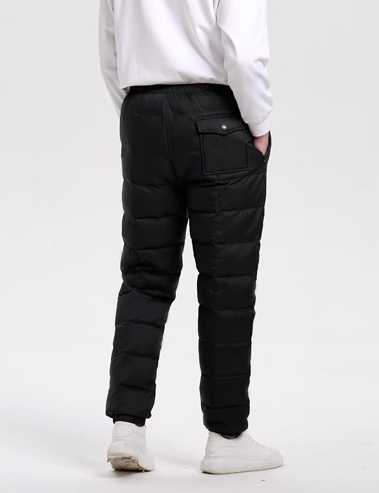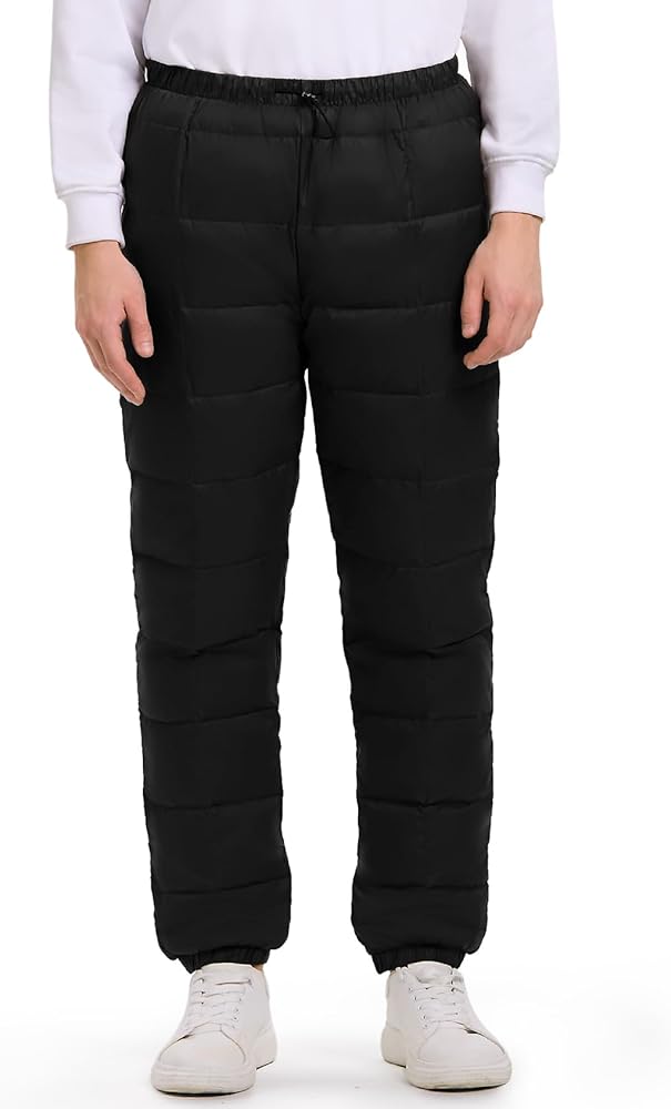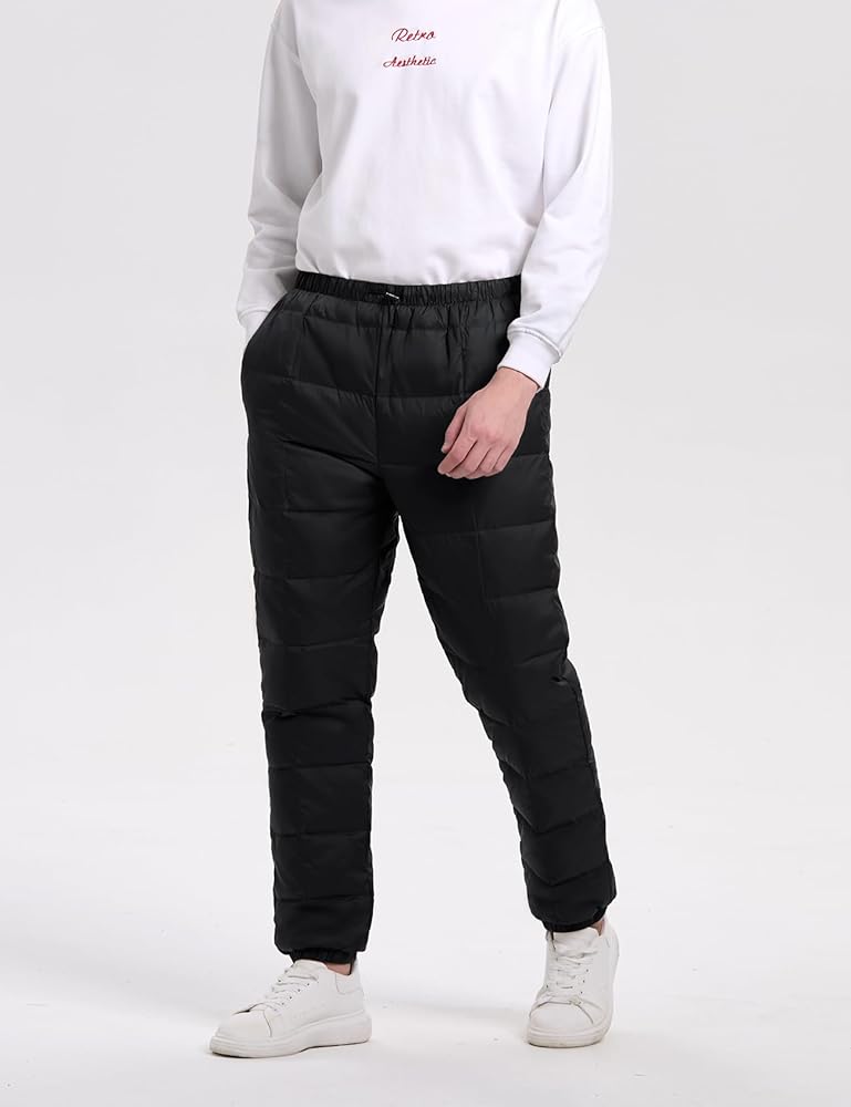 Premium Material: These men's down pants are made of quality materials and contain 75% down to keep you comfortable and warm in the cold winter. Soft and skin-friendly, lock in the temperature.