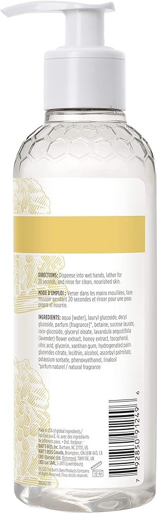 Burt's Bees Naturally Clean Hand Soap with Lavender and Honey is here to pamper your hands for a gentle yet effective clean. Infused with honey and lavender, this foaming hand soap cleans and softens hands while leaving a delightful scent after every wash. Use this recyclable bottle as a hand soap refill or self-care gift for your clean-obsessed friends. Created from 98.7% natural origin ingredients and nutrient rich botanicals makes this hand soap perfect for the whole family. It's also formulated without parabens, phthalates, SLS or petrolatum, and we never test on animals. Burt's Bees is proud to practice responsible sourcing for our natural origin ingredients. To use, simply dispense into wet hands, lather for 20 seconds, and rinse for clean, nourished skin. Reuse or recycle the bottle when you're done. Made in the USA of global ingredients, this foam hand soap makes it easy to gently cleanse your hands, naturally.