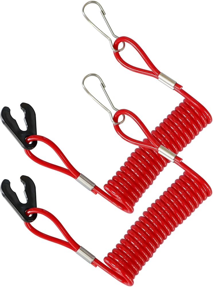 Ensure your safety on the water with this essential boat kill switch lanyard. Designed to shut off the engine if you become separated from the helm, this coiled lanyard attaches securely to your wrist. The bright red color makes it easy to spot in an accident, while the sturdy construction ensures reliable performance. With a compact, portable size, this lanyard is a must-have accessory for any boating enthusiast prioritizing safety.