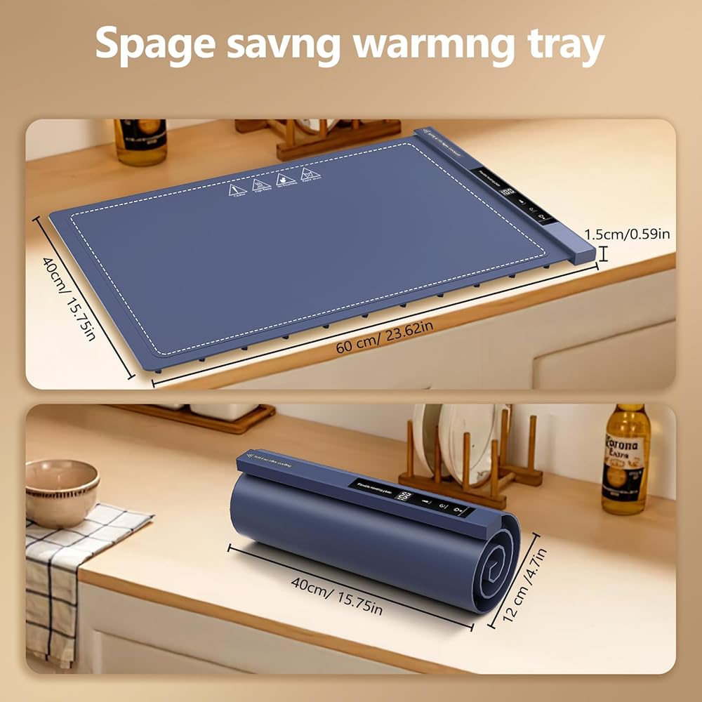 Electric Warming Tray - Fast Heating Food Warming Mat - Rollable Portable Silicone Food Warmer with 6 Level Temperature for Buffets Parties Gatherings Travel Home Daily Use