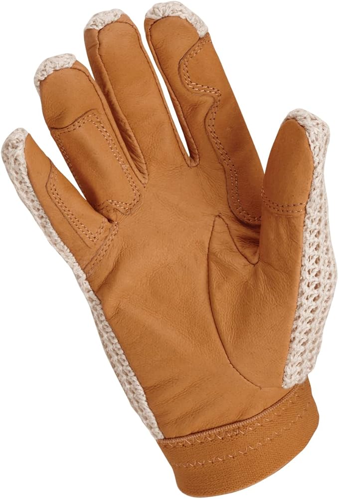 The crochet riding glove is our classic style glove for warm weather riding. Soft cotton mesh top and genuine leather palm makes this a good all around glove for schooling or pleasure riding.