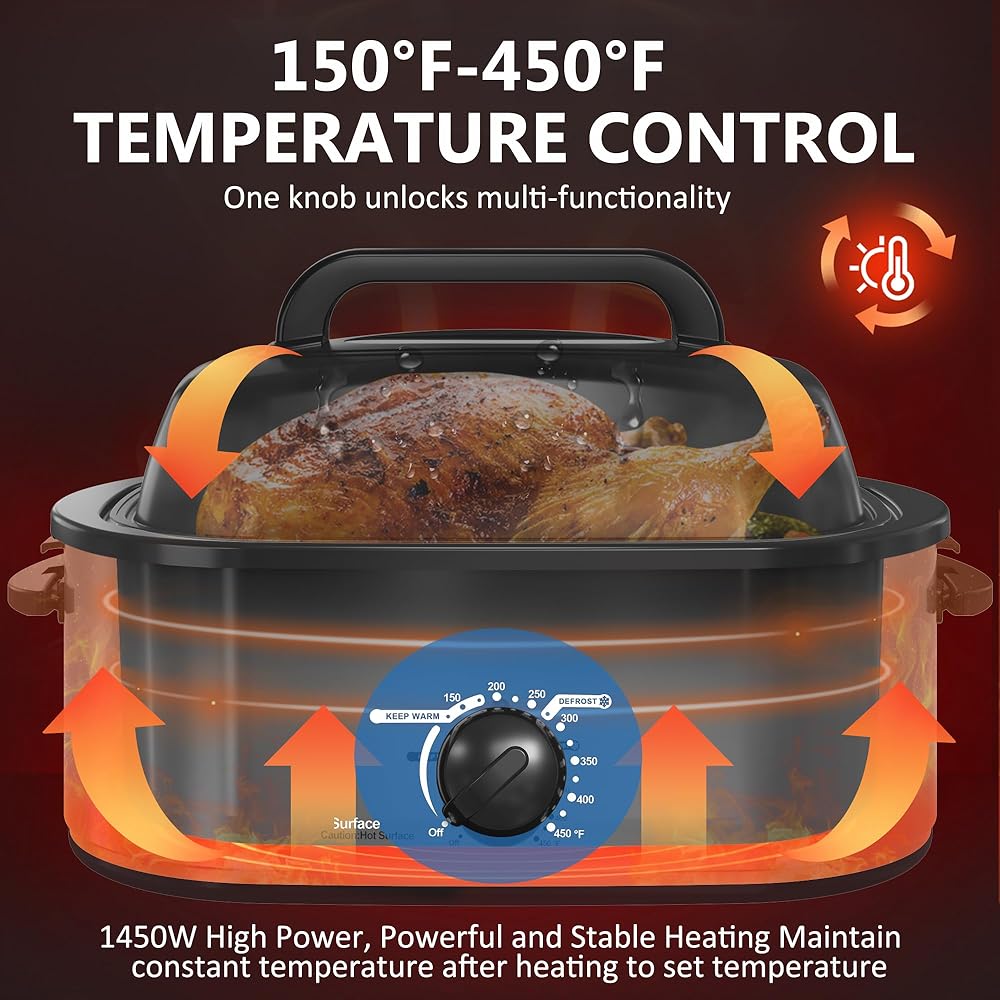 Adjustable Temperature Control: This one-touch roaster oven allows you to easily adjust temperatures from 150℉ to 450℉, ensuring precise cooking for a variety of dishes. With convenient defrost and warm functions, it simplifies meal preparation effortlessly.