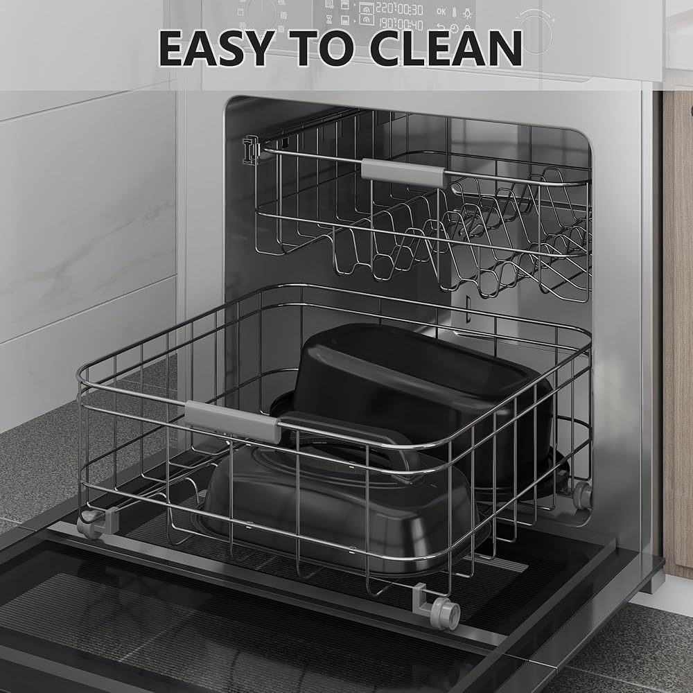 Easy Cleanup: Maintaining our electric oven roaster is easy with dishwasher-safe pans and racks. The stainless steel exterior wipes clean effortlessly, keeping it ready for your next culinary adventure.