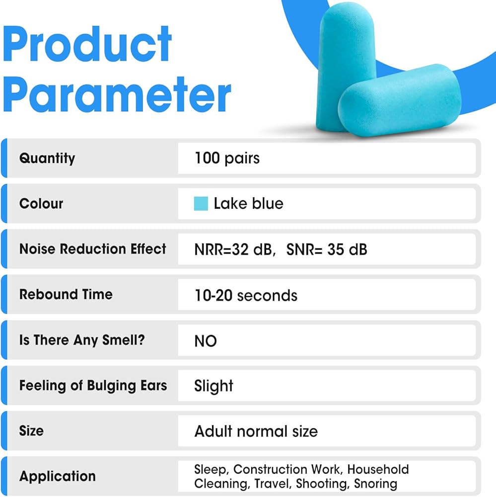 Affordable packed: You will get 100 pairs of foam earplugs. 32dB Noise Cancelling Ear Plugs, Lake blue