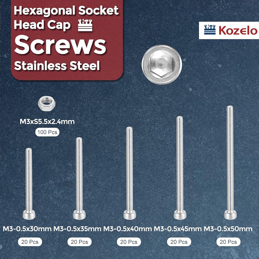 1- PACKAGE CONTENTS - 200 packs of hex socket head cap bolts screw kit; Thread size: M3x30/35/40/45/50mm; Please refer to the pictures for specific products and sizes; The quantity and size are enough to meet your needs on different occasions.